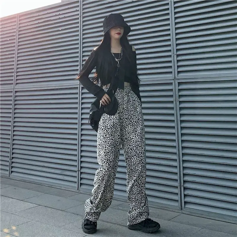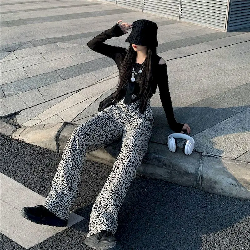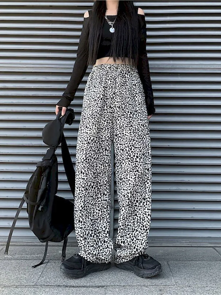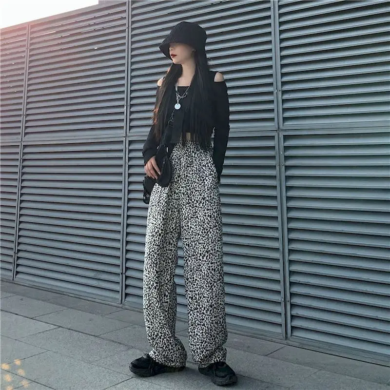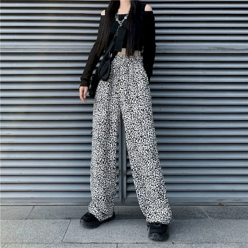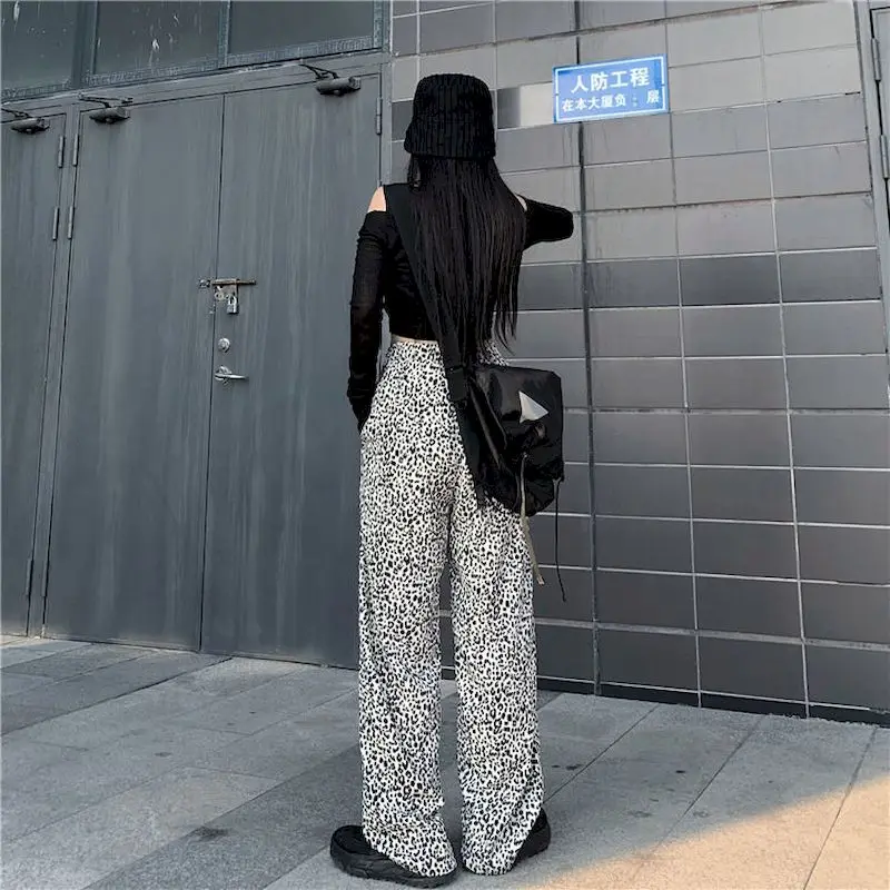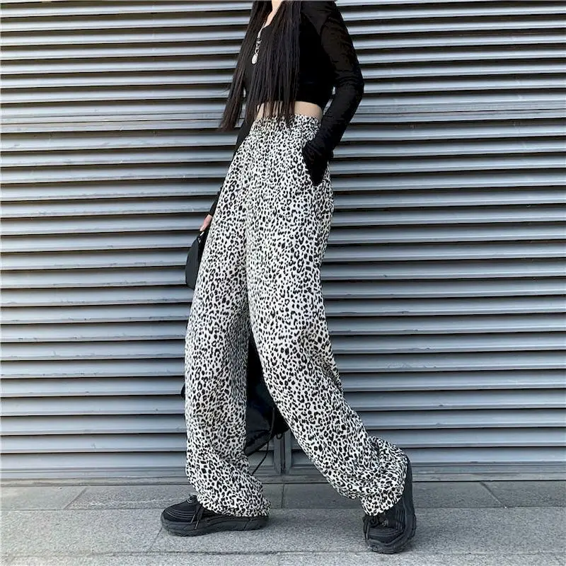 Новая Осенняя Корейская версия Ins с леопардовым принтом горячая девушка с драпировкой и широкими штанами для детей, свободные и тонкие прямые брюки мыть брюки