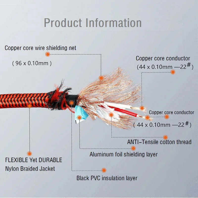 > Проводник Сердечника кабеля:Высококачественный медный проводник (бескислородная медь), двойное экранирование, Отличная проводимость и оптимальная передача сигнала. Обеспечивает передачу высокого качества звука или сигнала и улучшает качество звука. Высококачественный аудиокабель для вашего дома-развлечения, система Hi-Fi, микшер, сабвуфер и другие медиа-устройства.