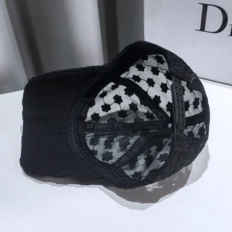 Бейсболка женская в стиле хип-хоп, брендовая хлопковая кепка с кружевом и дышащей сеткой, регулируемая, лето