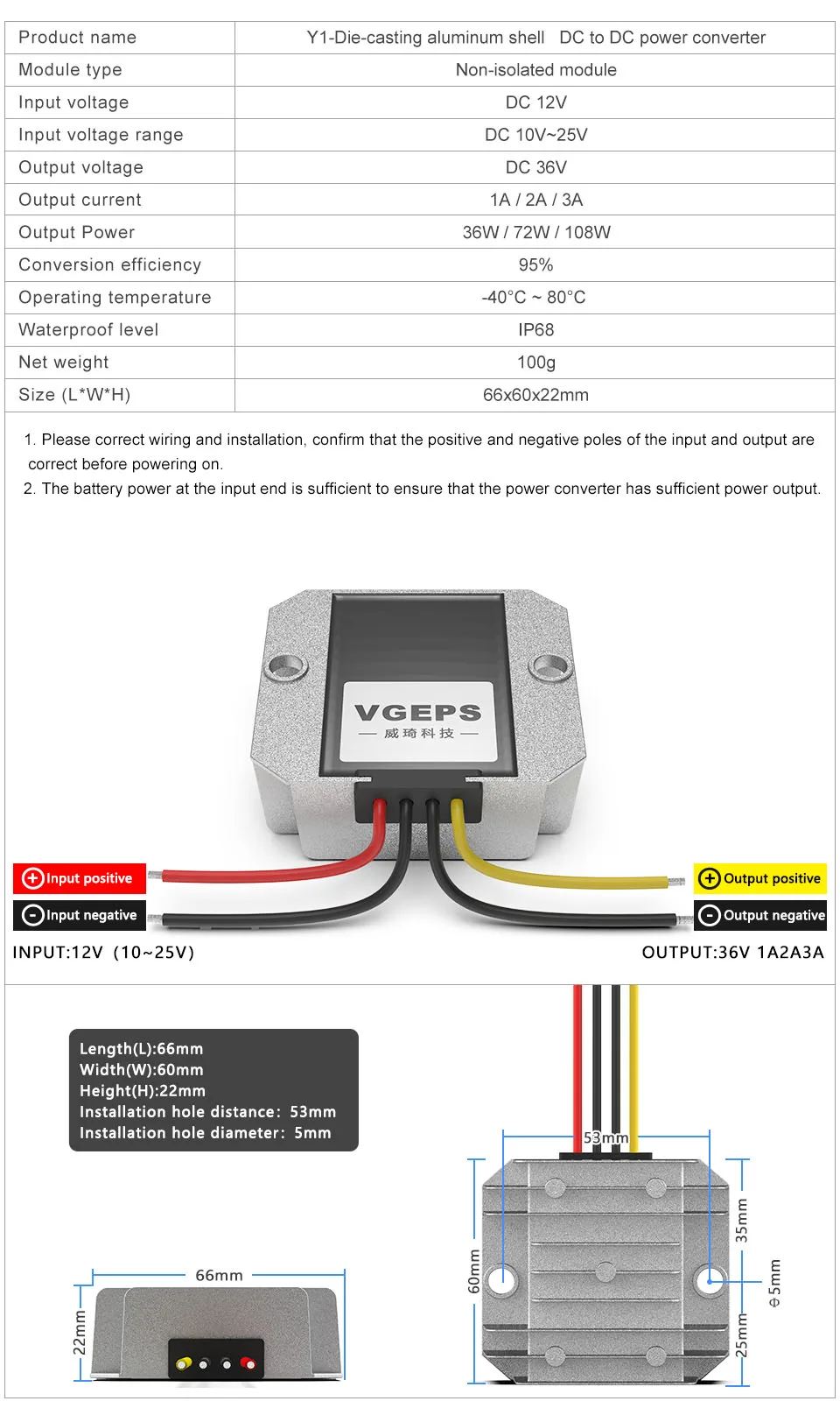 Преобразователь питания 12 В в 36 В постоянного тока, 12 В, литр, 3...