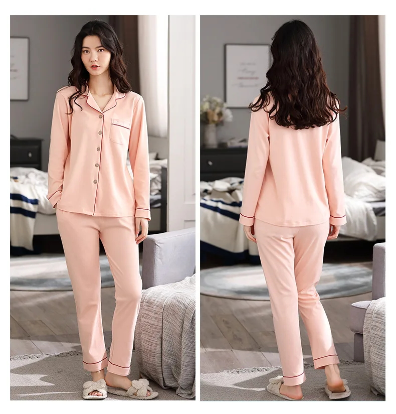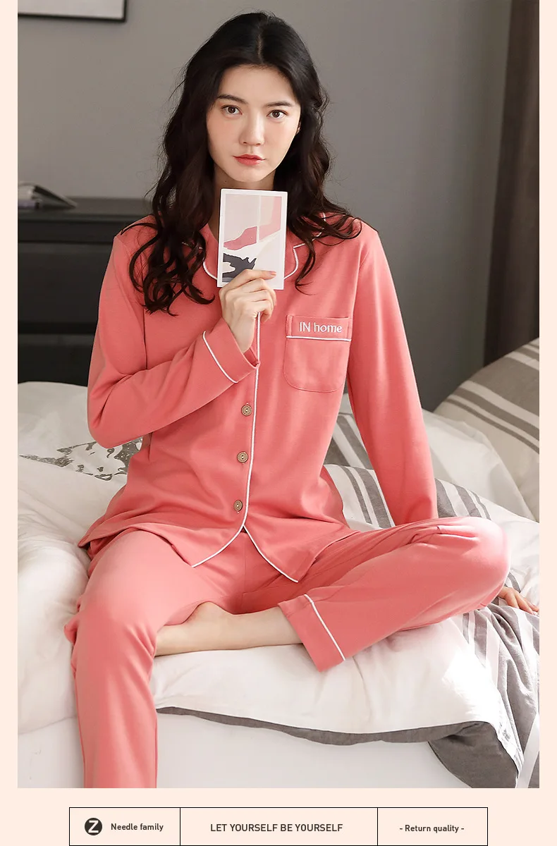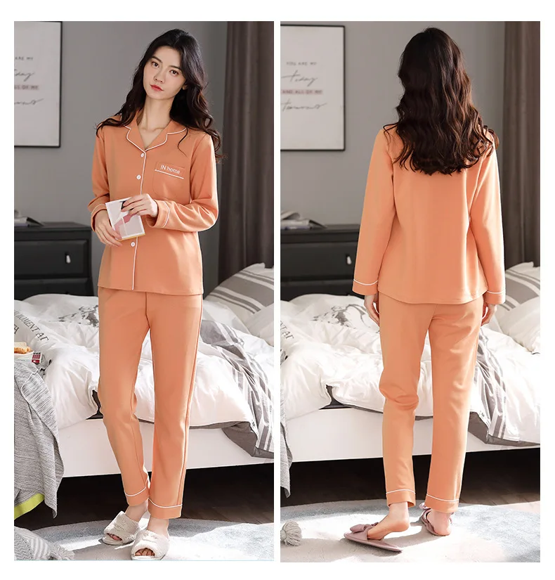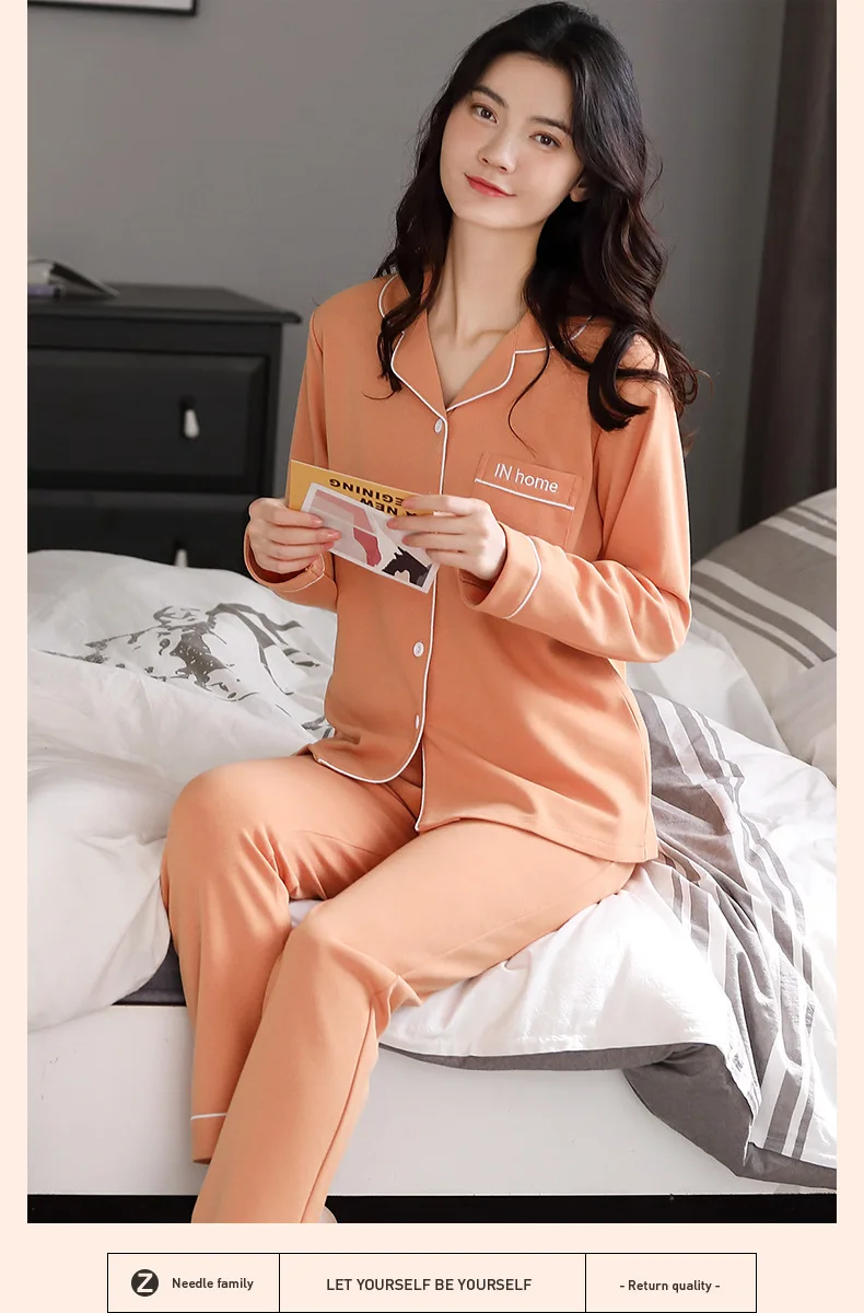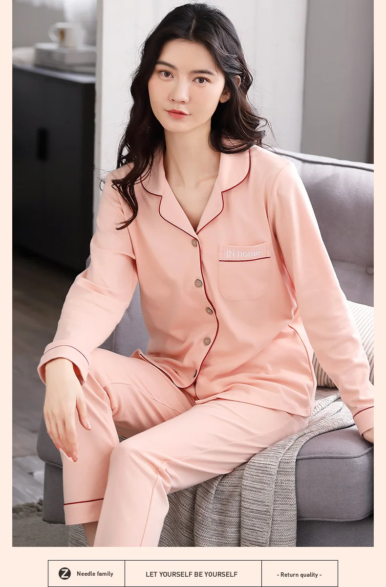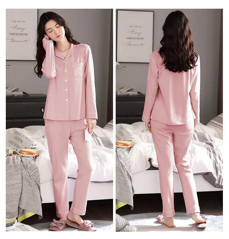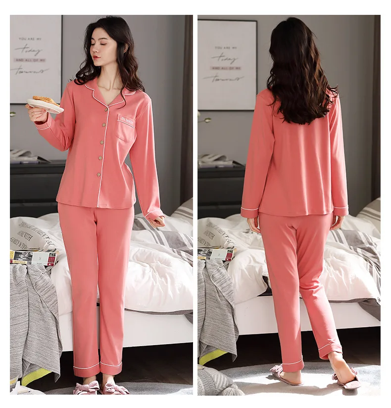 Женский пижамный комплект на весну и осень, брюки из чистого хлопка с длинным рукавом, модная Домашняя одежда, мягкий и удобный комплект из двух предметов