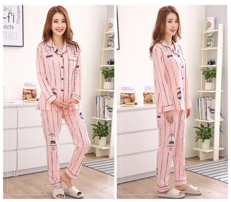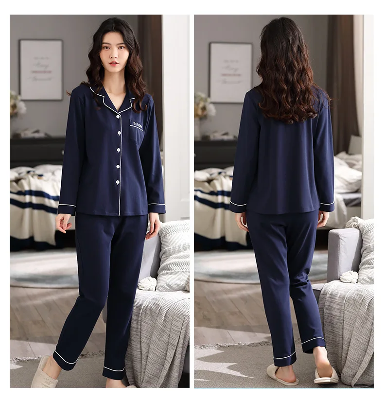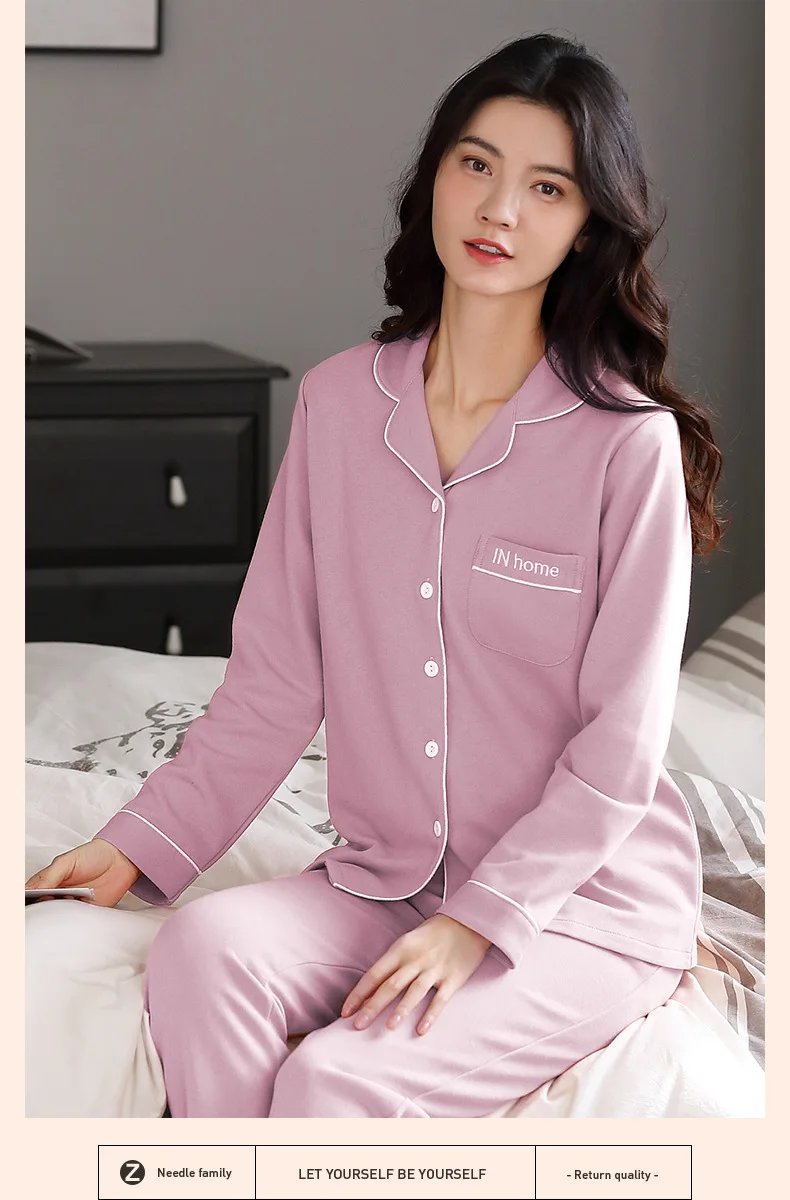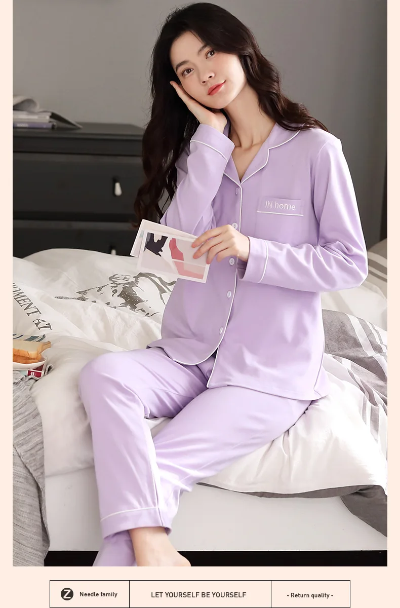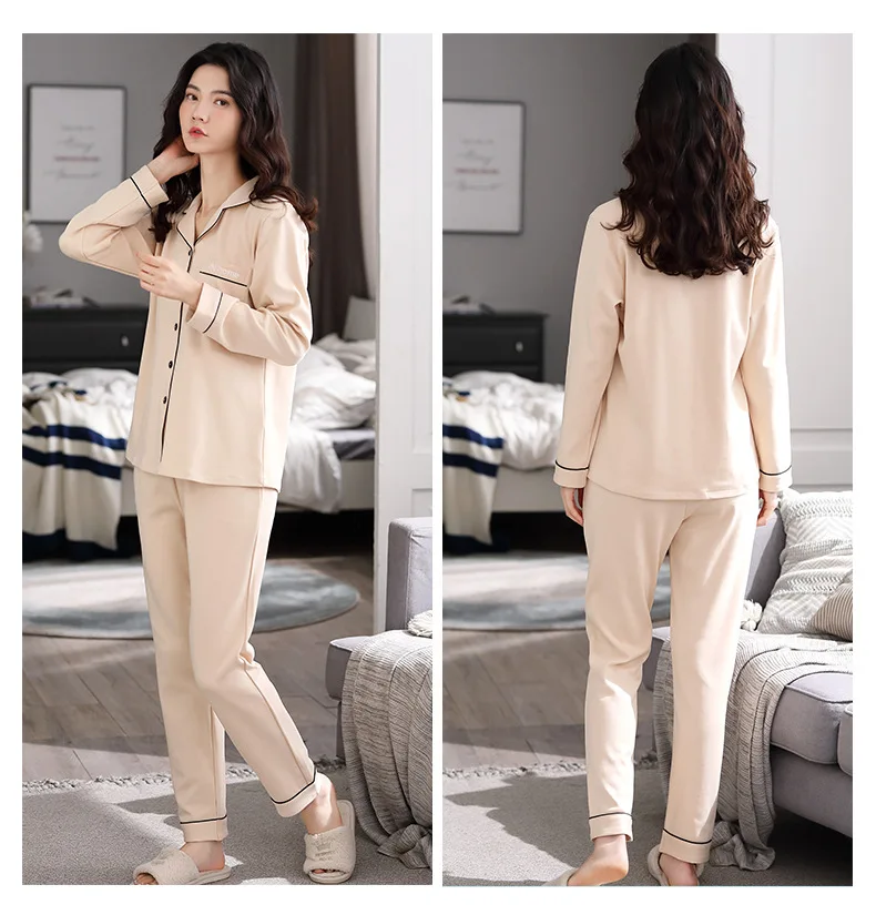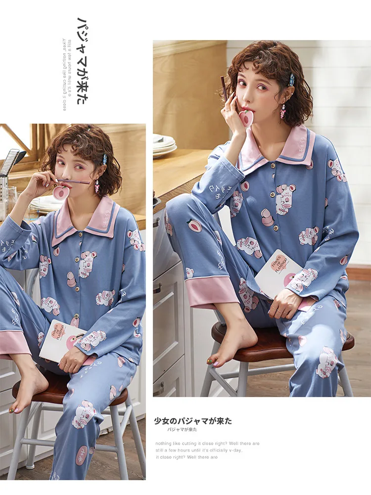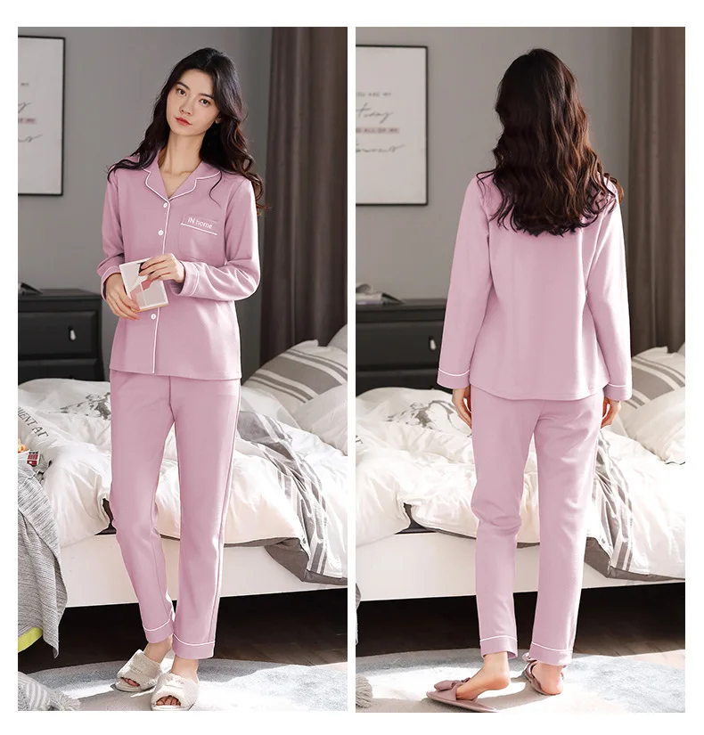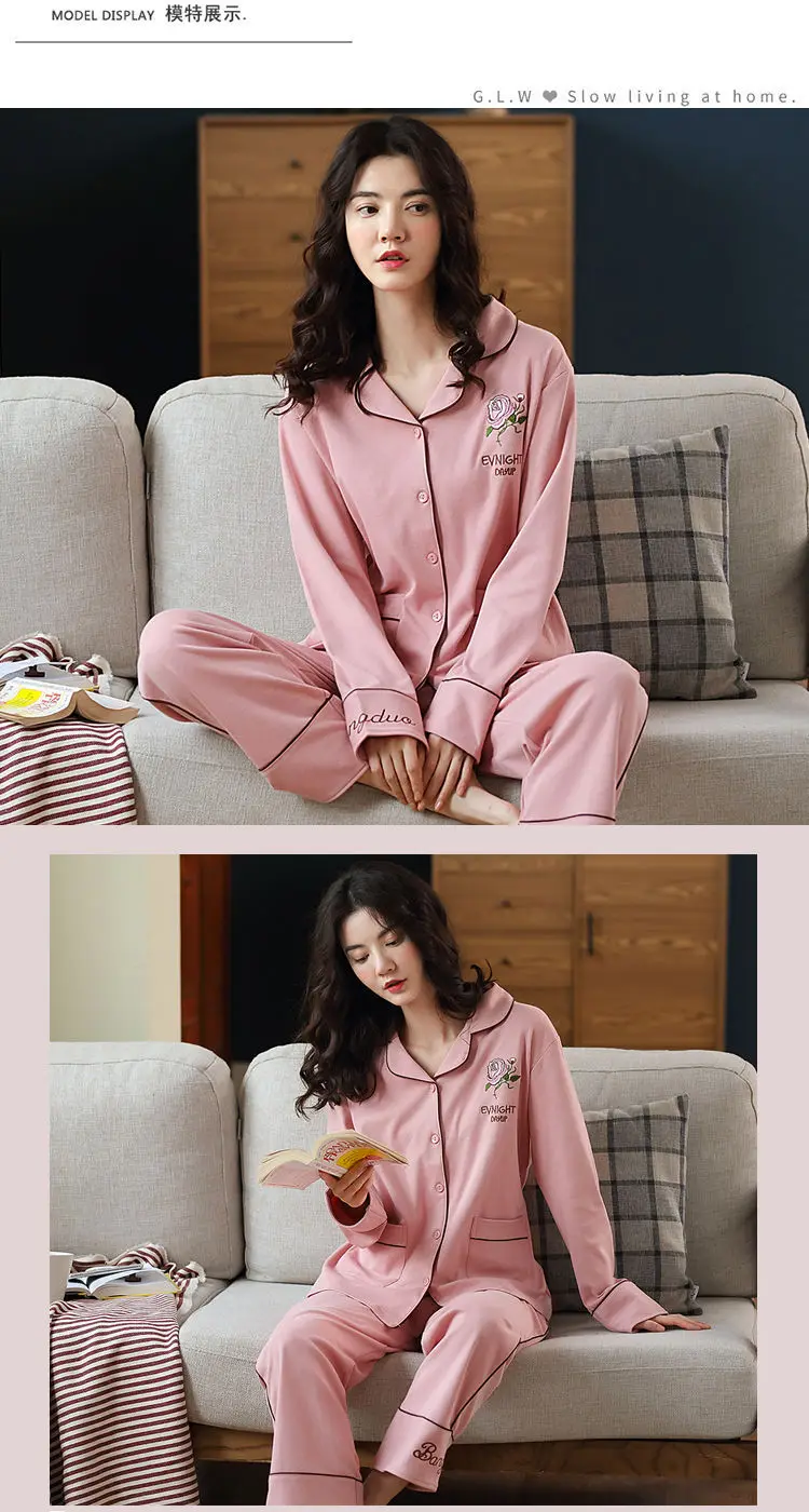 Женский пижамный комплект на весну и осень, брюки из чистого хлопка с длинным рукавом, модная Домашняя одежда, мягкий и удобный комплект из двух предметов