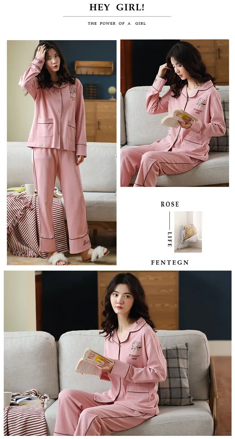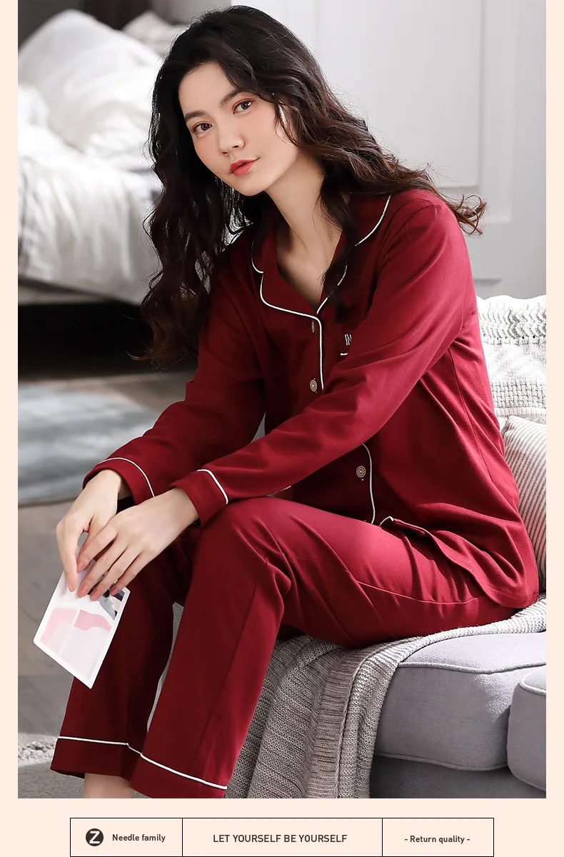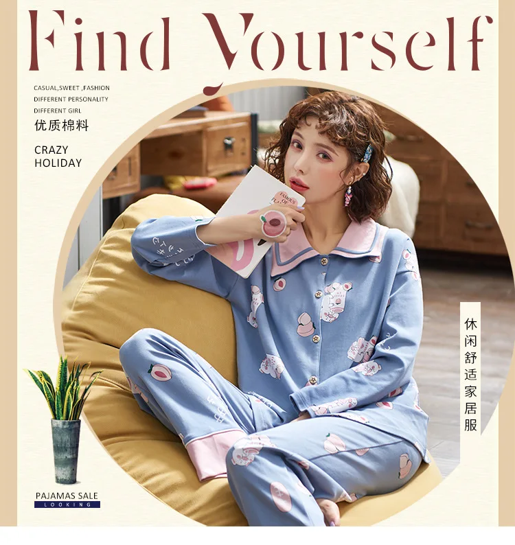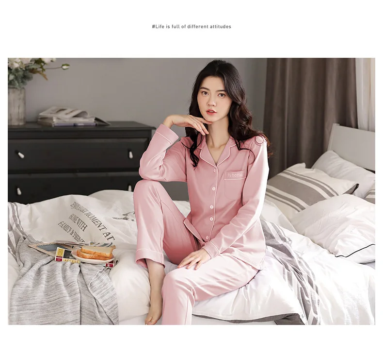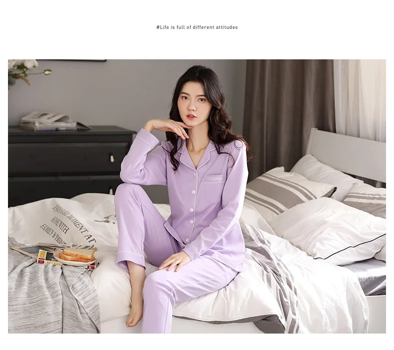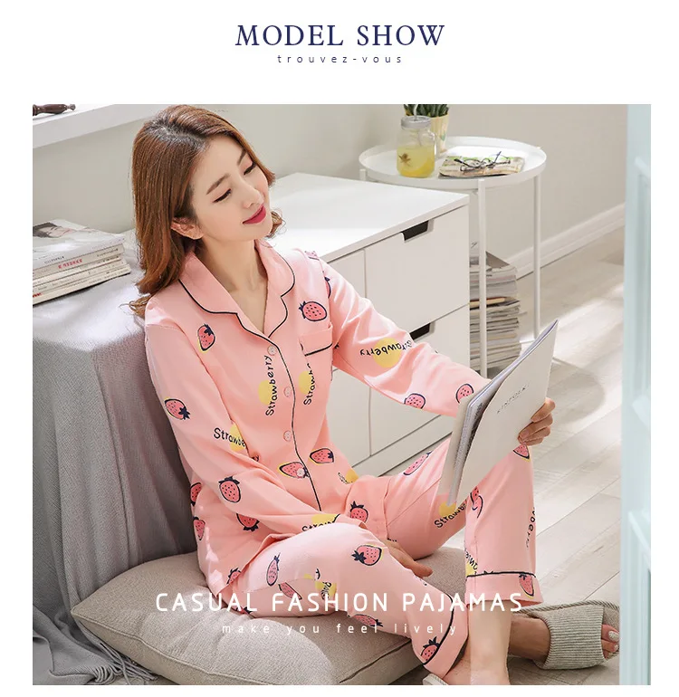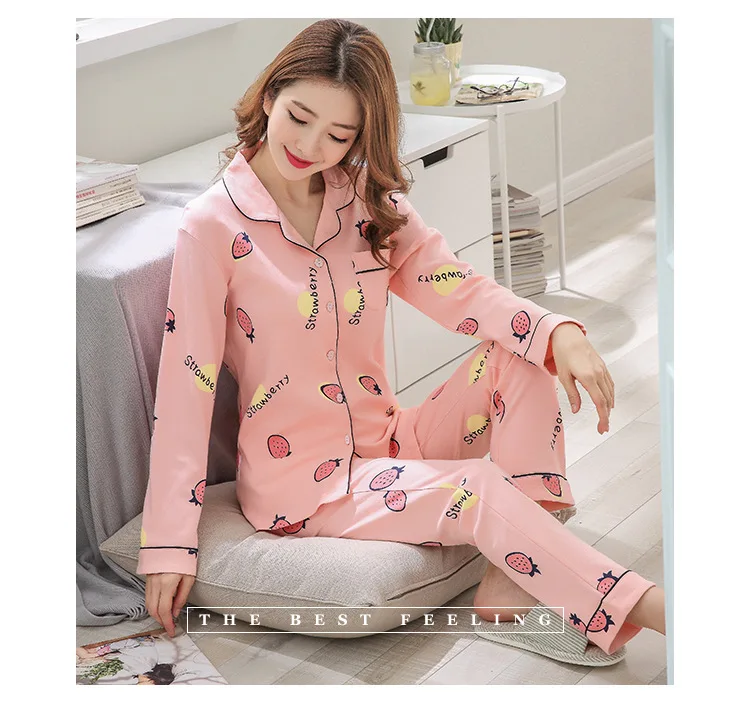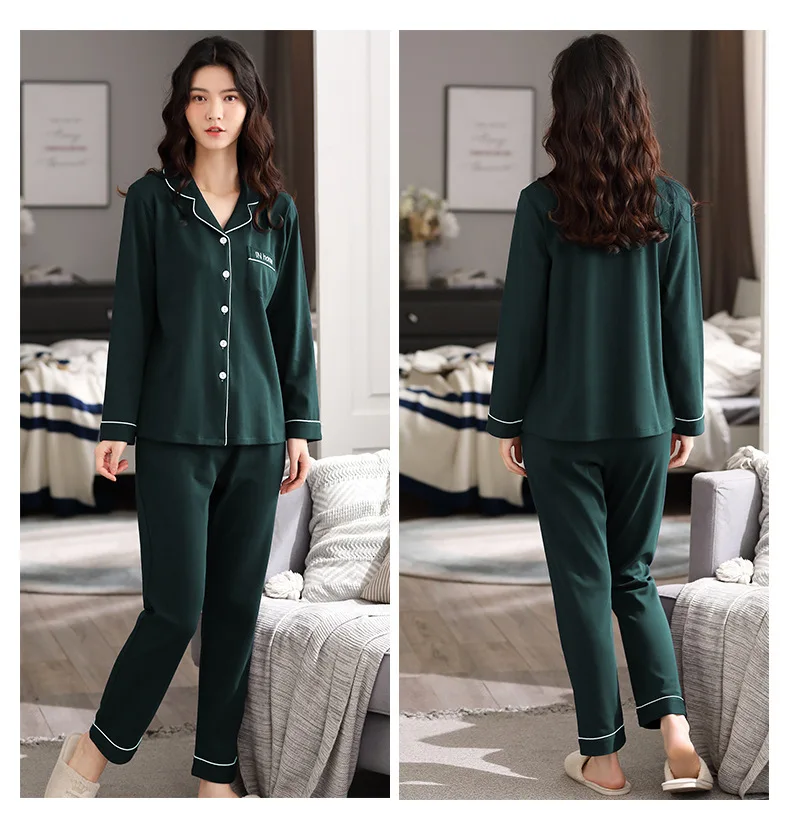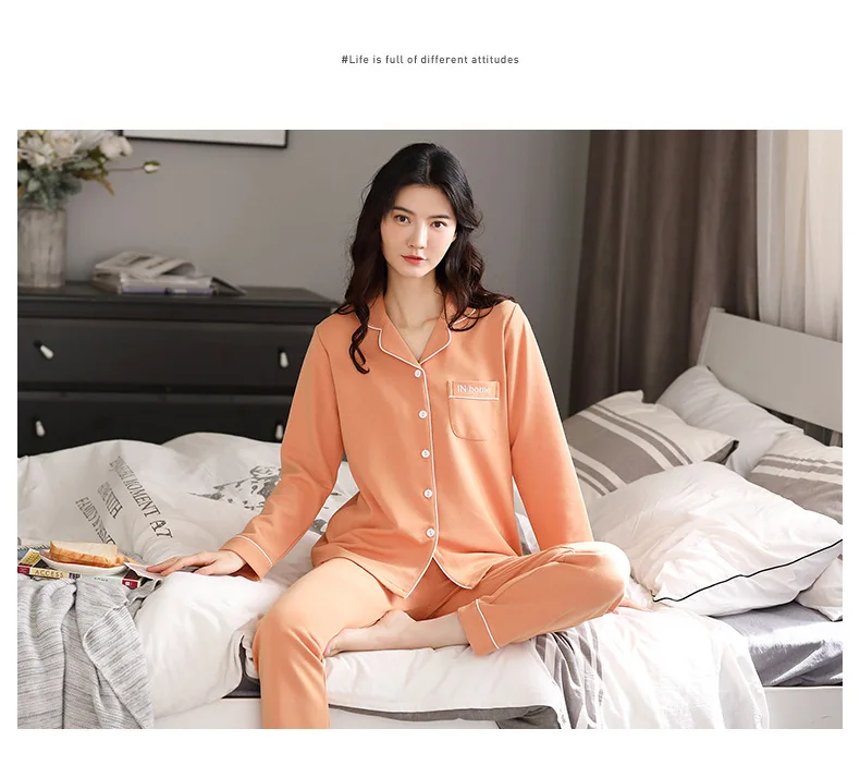 Женский пижамный комплект на весну и осень, брюки из чистого хлопка с длинным рукавом, модная Домашняя одежда, мягкий и удобный комплект из двух предметов