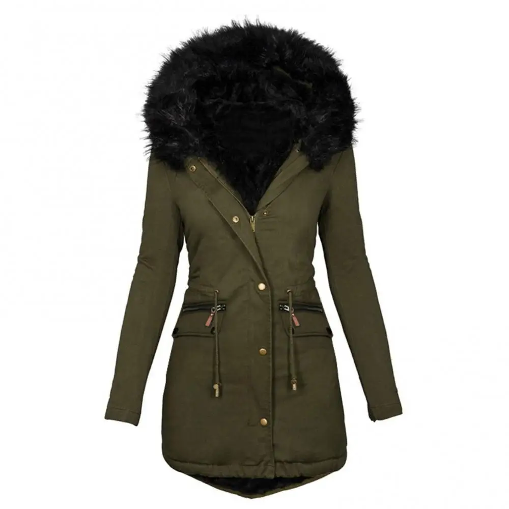 Женское зимнее теплое пальто средней длины, парка с длинным рукавом и капюшоном из искусственного меха, зимняя верхняя одежда