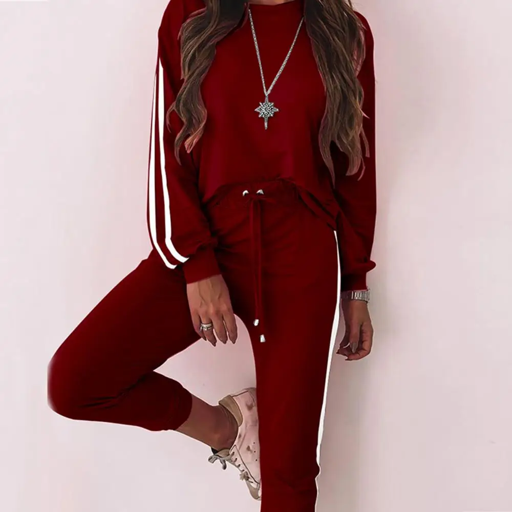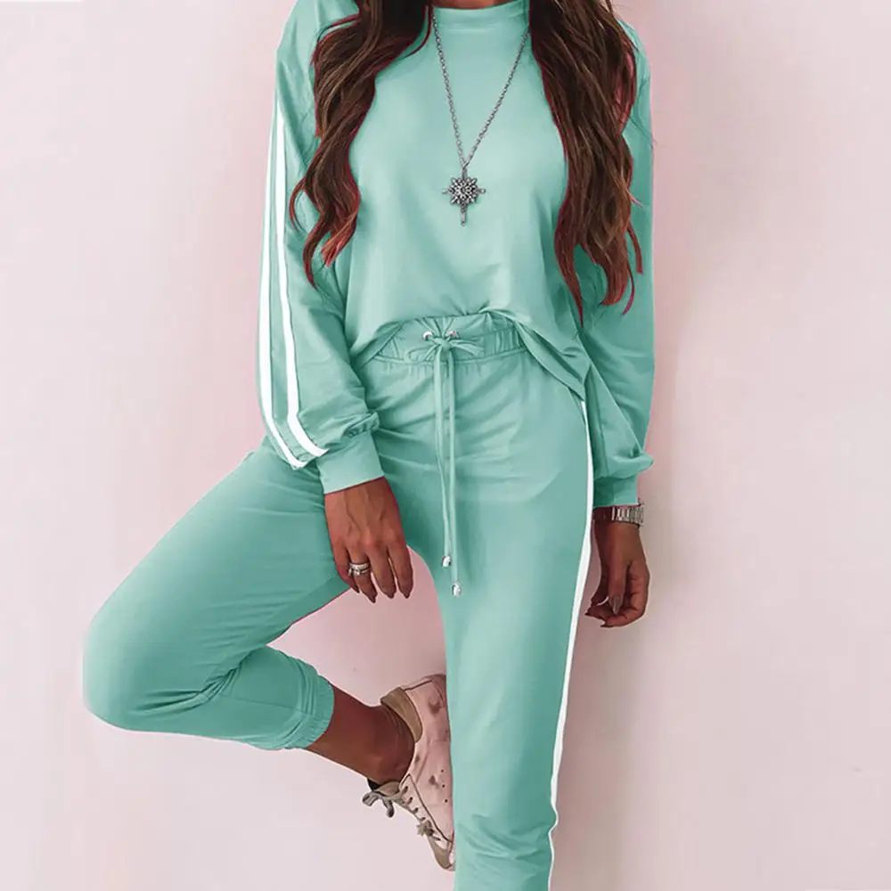 Осенний комплект из двух предметов, спортивный костюм, женский пуловер в полоску с принтом, топ + штаны, спортивный костюм для бега, женская повседневная одежда для отдыха, наряды