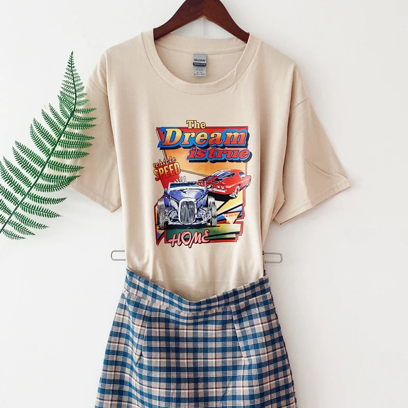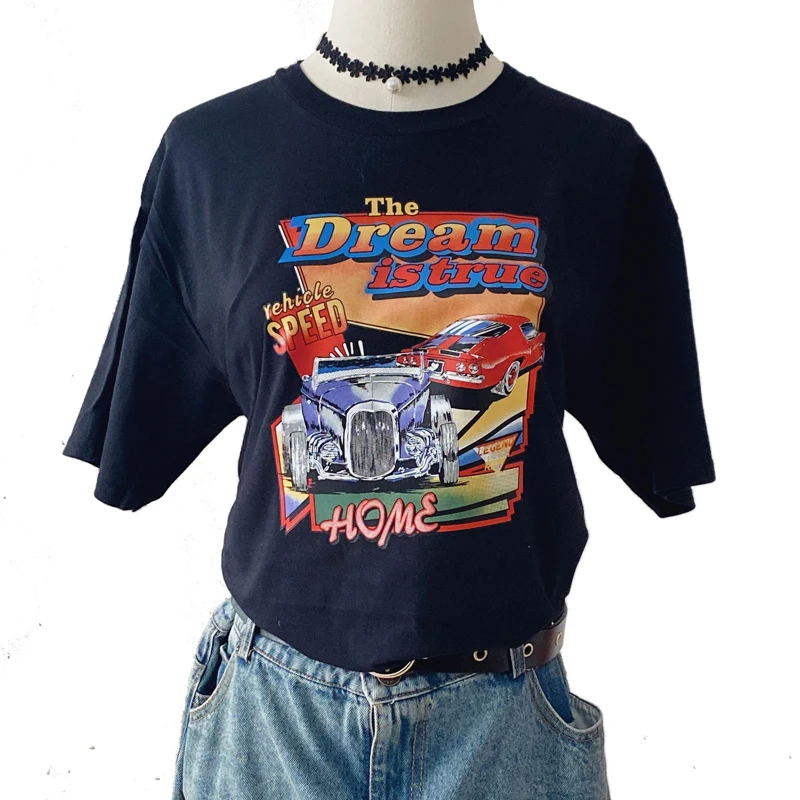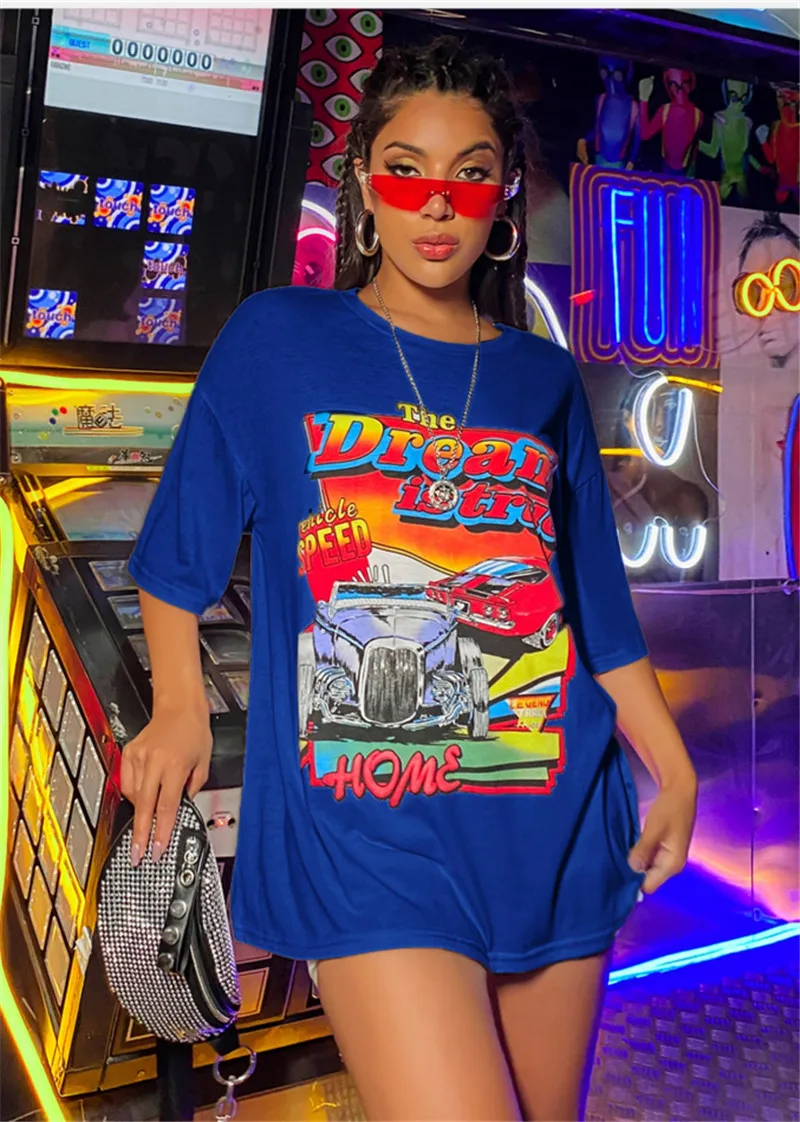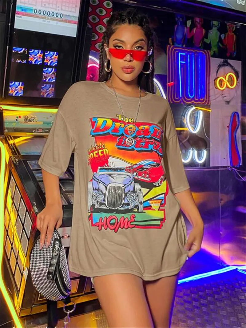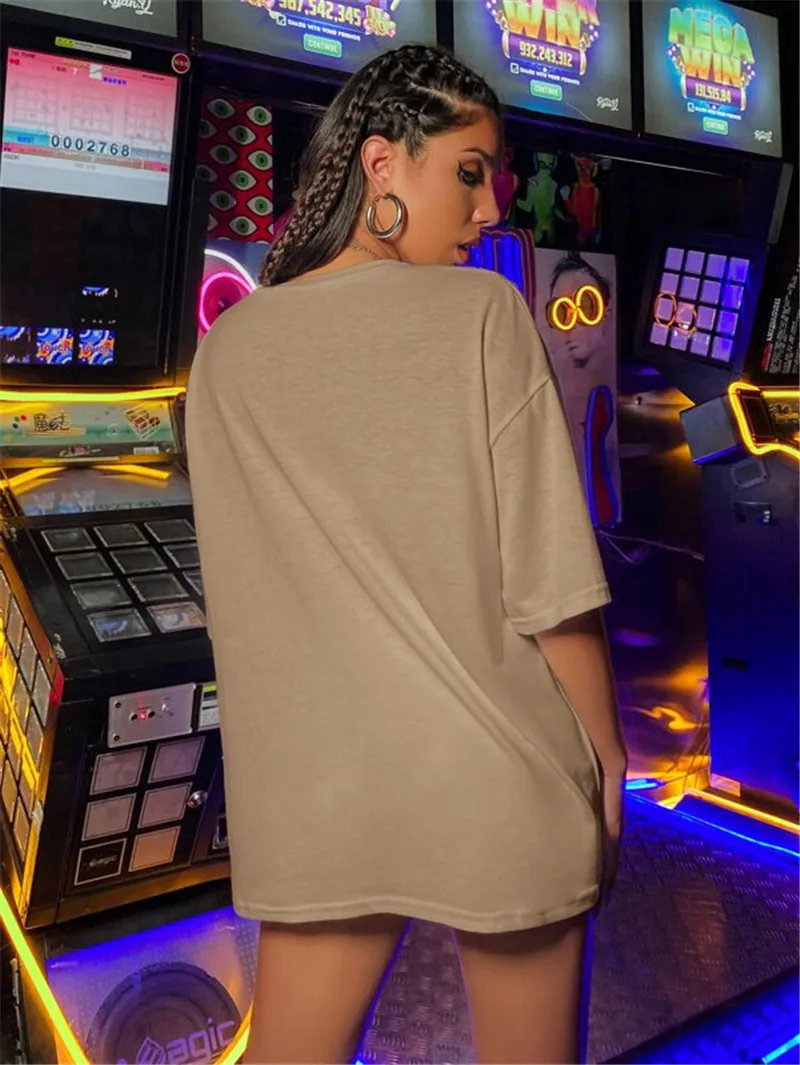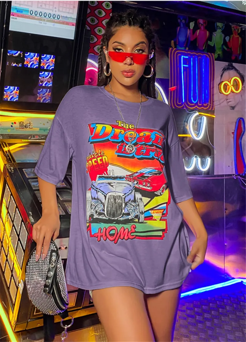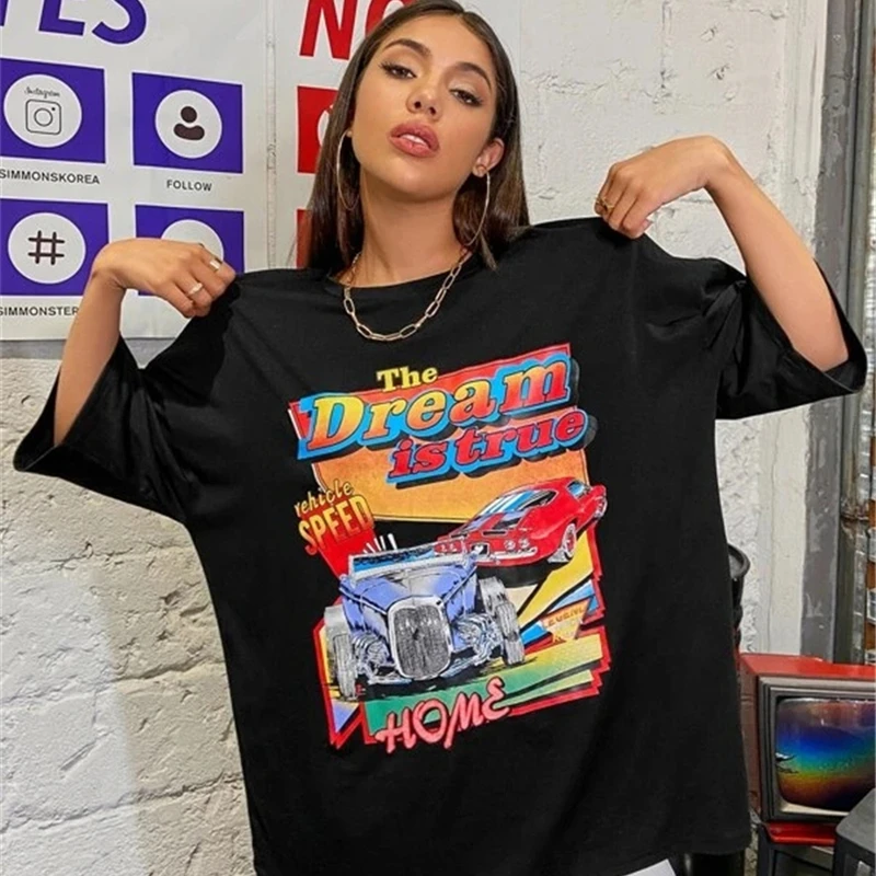 Женская модная футболка с коротким рукавом и принтом, стильные топы с круглым вырезом для покупок, повседневная одежда