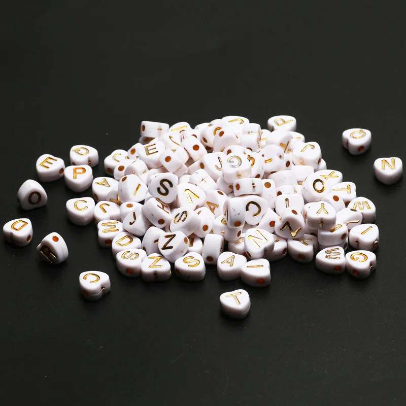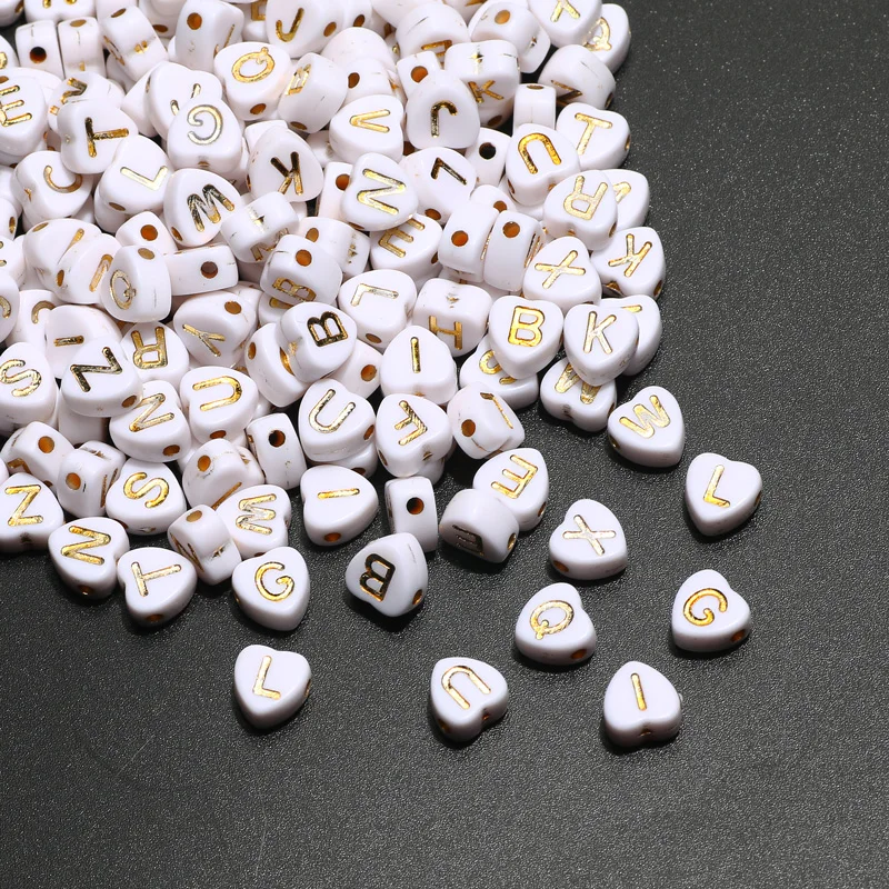 Смешанные белые акриловые бусины с буквами 7 мм, буквы в форме сердца, бусины россыпью для изготовления ювелирных изделий сделай сам, аксессуары для ожерелья, браслета