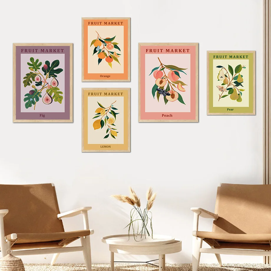 Настенная живопись с фруктовым рынком, апельсиновая груша, инжир, персик, лимон, Картина на холсте в скандинавском стиле, настенные картины для украшения гостиной