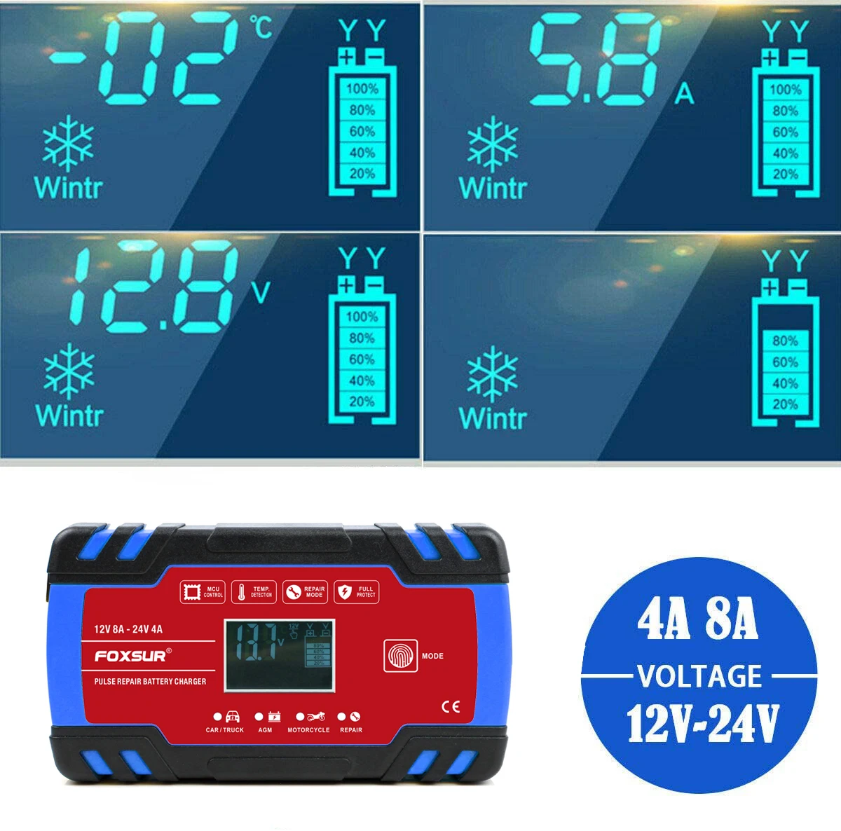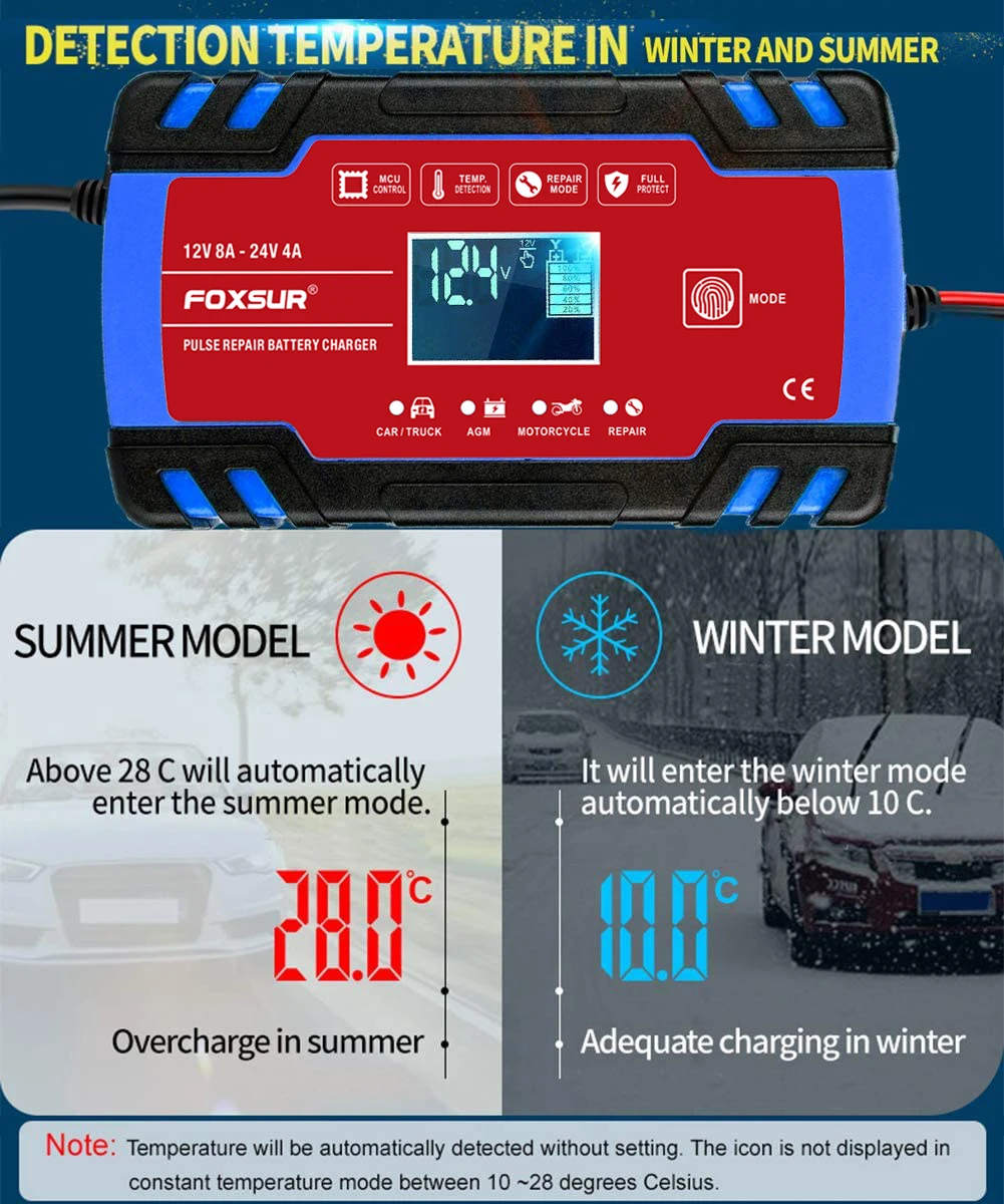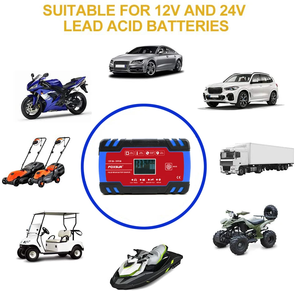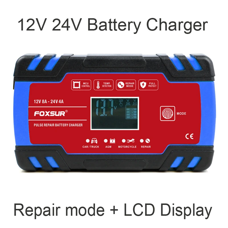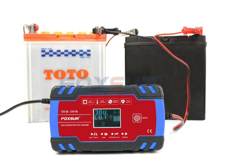 FOXSUR 8-Amp полностью автоматическое профессиональное умное зарядное устройство, 12 В и 24 В зарядное устройство, устройство для технического обслуживания аккумулятора FOXSUR 8-Amp