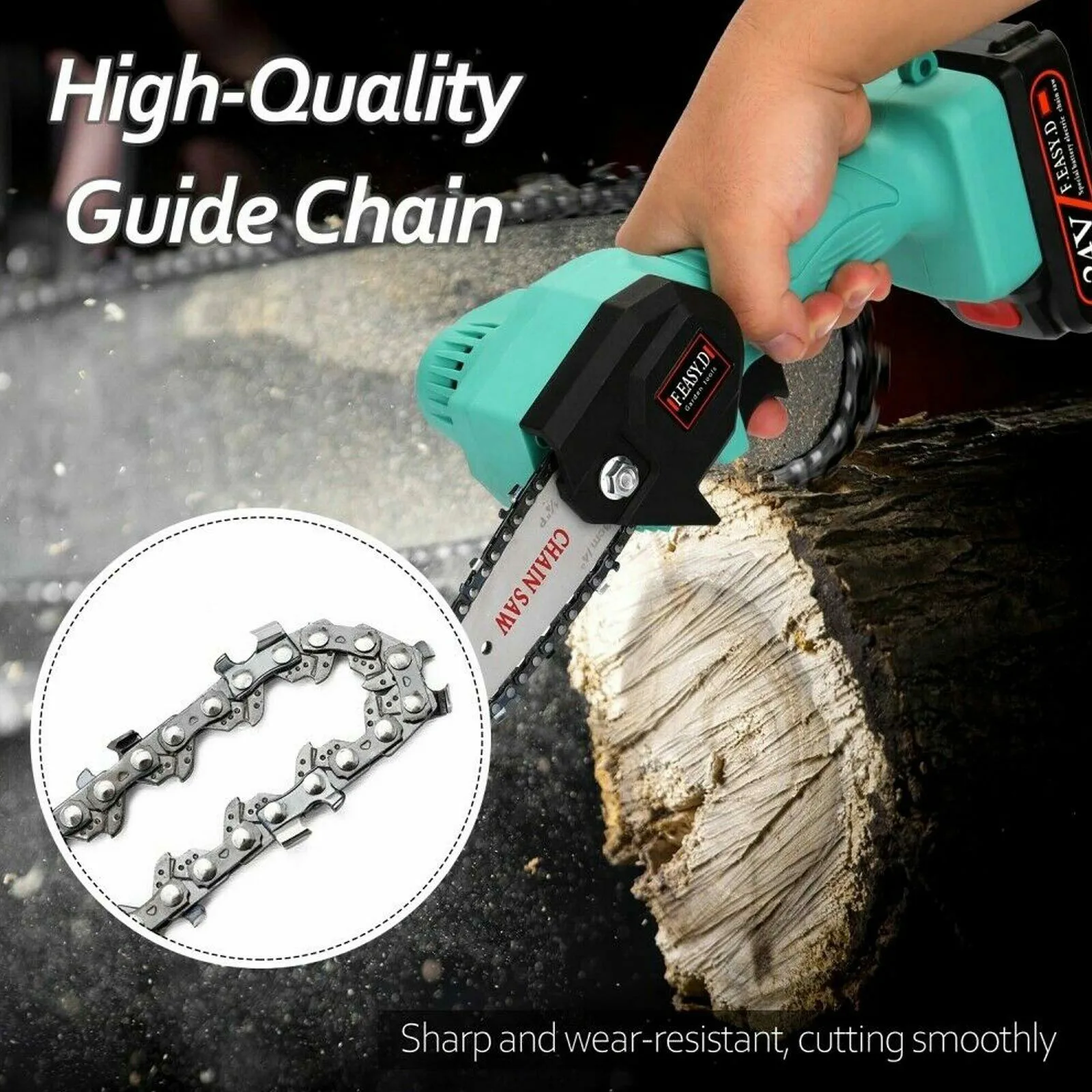2.Цепь бензопилы и аксессуары направляющих колес изготовлены из высокоскоростного 65MnСталь, с высокой твердостью, быстрой скоростью нарезки и улучшенной эффективностью.