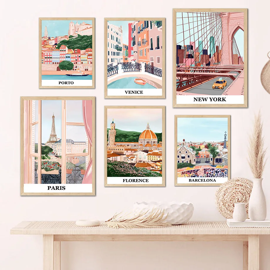 Настенная картина Барселона, Линкольн, Флоренция, Париж, Нью-Йорк, постеры и принты на холсте в скандинавском стиле, настенные картины для декора гостиной