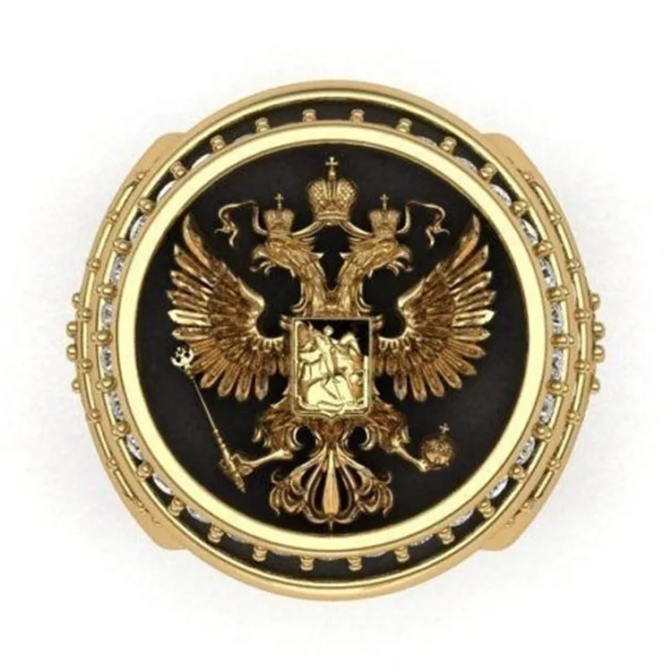 Мужское кольцо золотого цвета с двумя головами и орлом, Дух Империи...