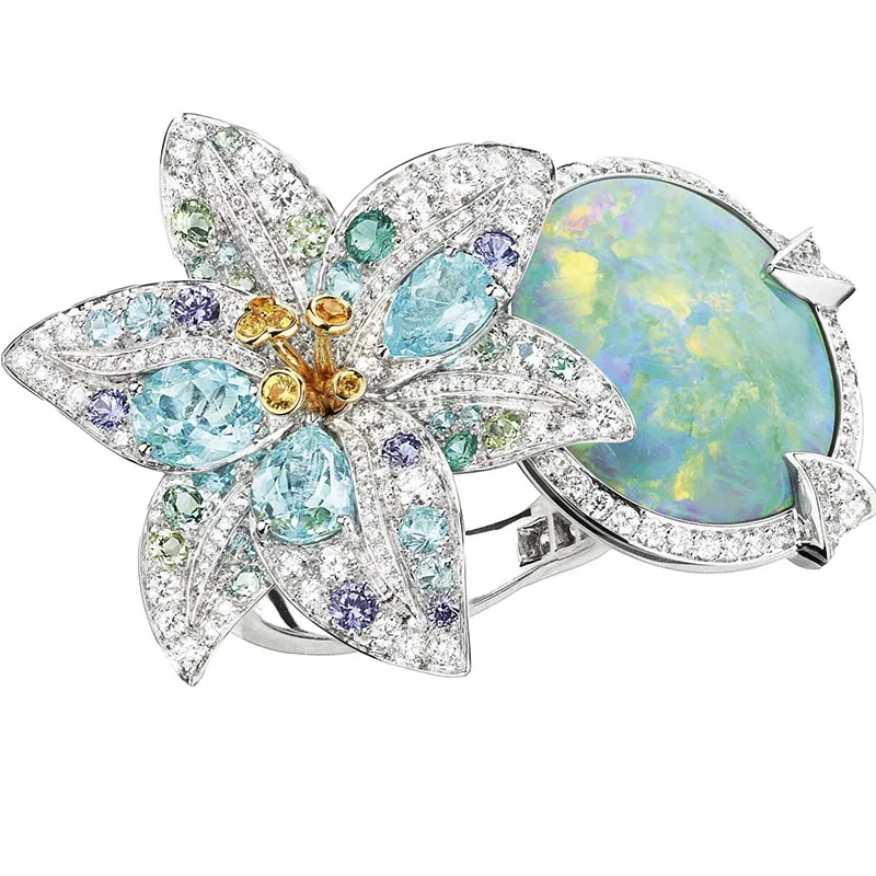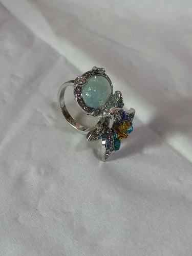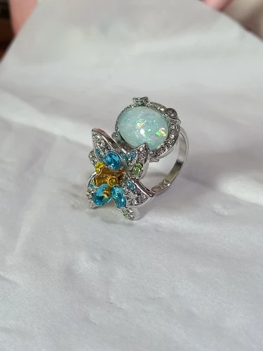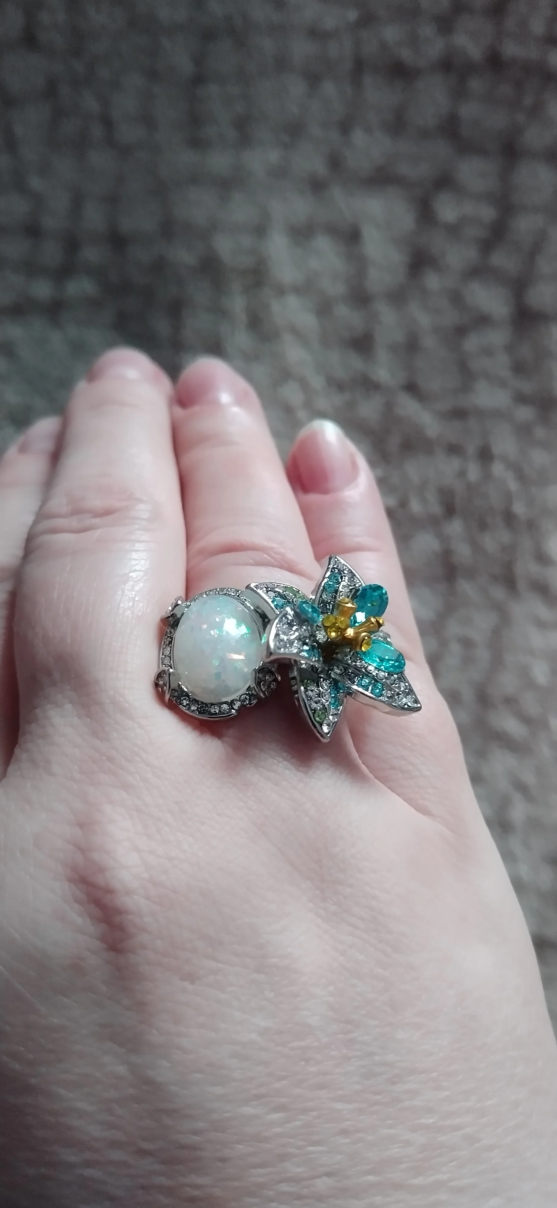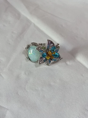 Женское кольцо из сплава с цветами, опалом и белым цирконием