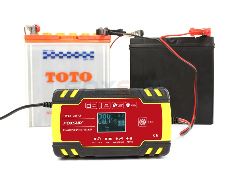 Foxsur 12 в-24 в 8A автомобильное зарядное устройство для ремонта импульсов мотоцикла полностью автоматическое зарядное устройство для аккумулятора цифровой ЖК-дисплей