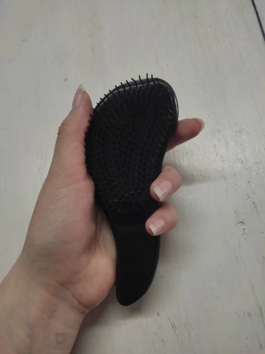 Расческа компактная, удобно лежит в руке, удобно носить с собой. Снизу волосы не прочесывает, например, чтобы собрать в хвост, при чем, что они не очень густые. Сверху расчесать пойдет
