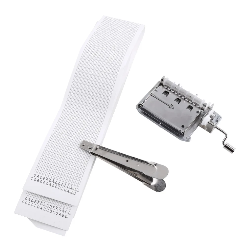 30 нот механическая музыкальная шкатулка лента рукоятка Музыкальная Коробка часть движения + Дырокол с 3 полосками DIY песни Идеальный Подарочный набор Характеристики: Примечание: 30 Материал: цинковый сплав, ментальная бумага Музыка Движение Размеры: 10,7x6,9 см/4,21x2,71" Размер ленты: 66x7 см/26x2,75" Общий вес: 406 г (прибл.) Инструкция: 1. Крепится с 2 или 3 винтами, которые обычно используются для игрушек или подарков с винтовыми отверстиями 2. Используйте правильный клей для фиксации. 3. Объем маленький, его необходимо зафиксировать в соответствующей коробке или чехол, чтобы увеличить громкость. Посылка включает в себя: 1 х рукоятка музыкального движения 1 х Дырокол 3 х пустые ленты Примечание: 1. Допускается погрешность в 1-3 см из-за ручного измерения. Спасибо за понимание. 2. Мониторы не калибруются так же, цвет товара, отображаемый на фотографиях, может немного отличаться от реального объекта. Пожалуйста, выберите настоящий стандарт.