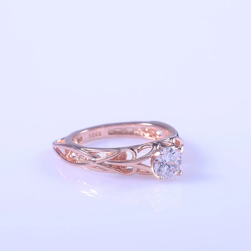 Женское кольцо из розового золота, с инкрустацией из яркого белого камня