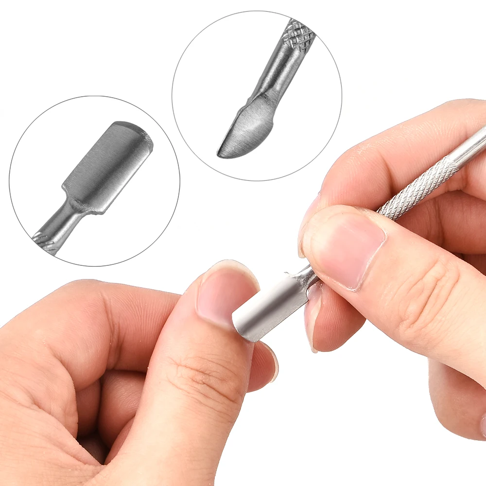 Двусторонний толкатель для кутикулы, из нержавеющей стали, 1 шт.