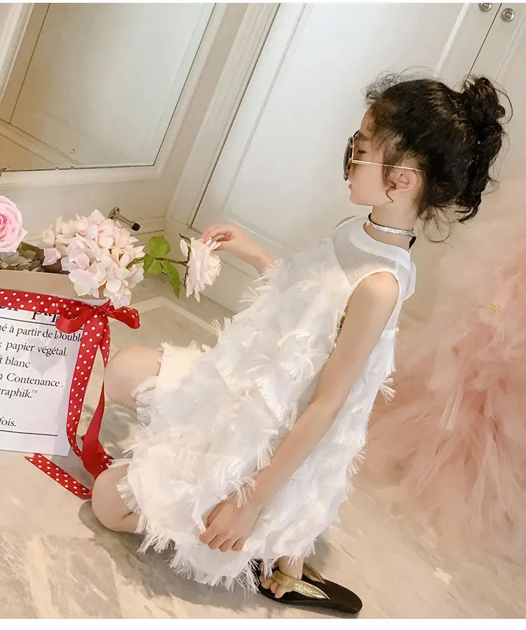 Детские платья для девочек, элегантные платья с кисточками из перье...