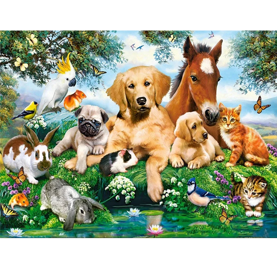 Набор для алмазной живописи стразы, картина 5D сделай сам с изображением лошади, собаки, кошки, попугая, птиц, мозаика для вышивки