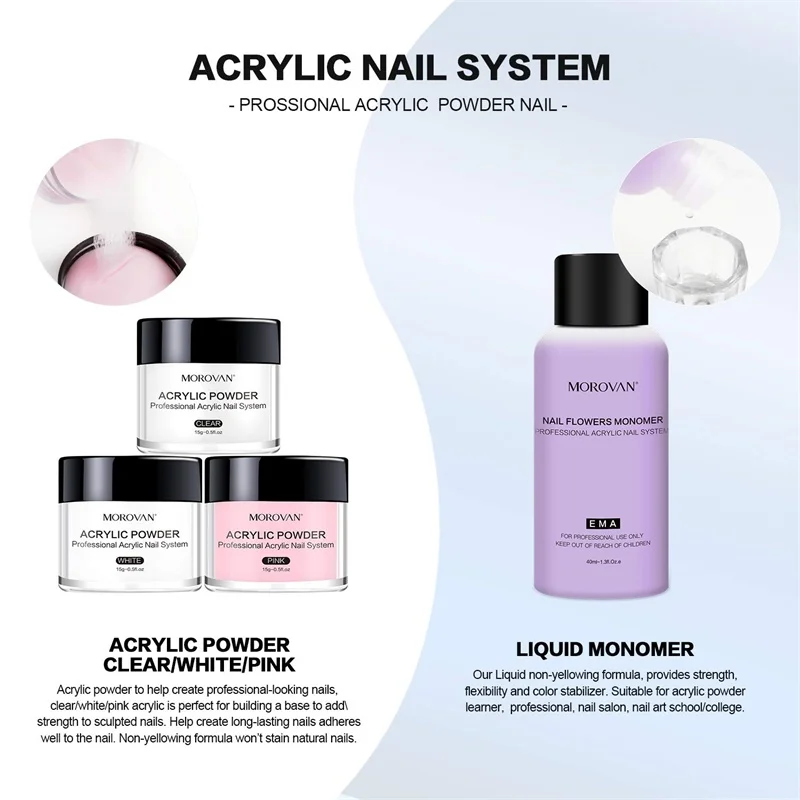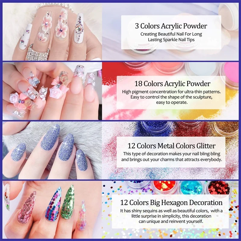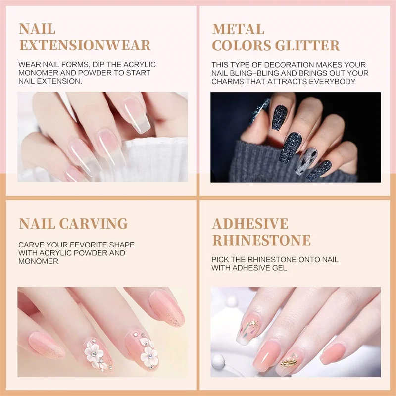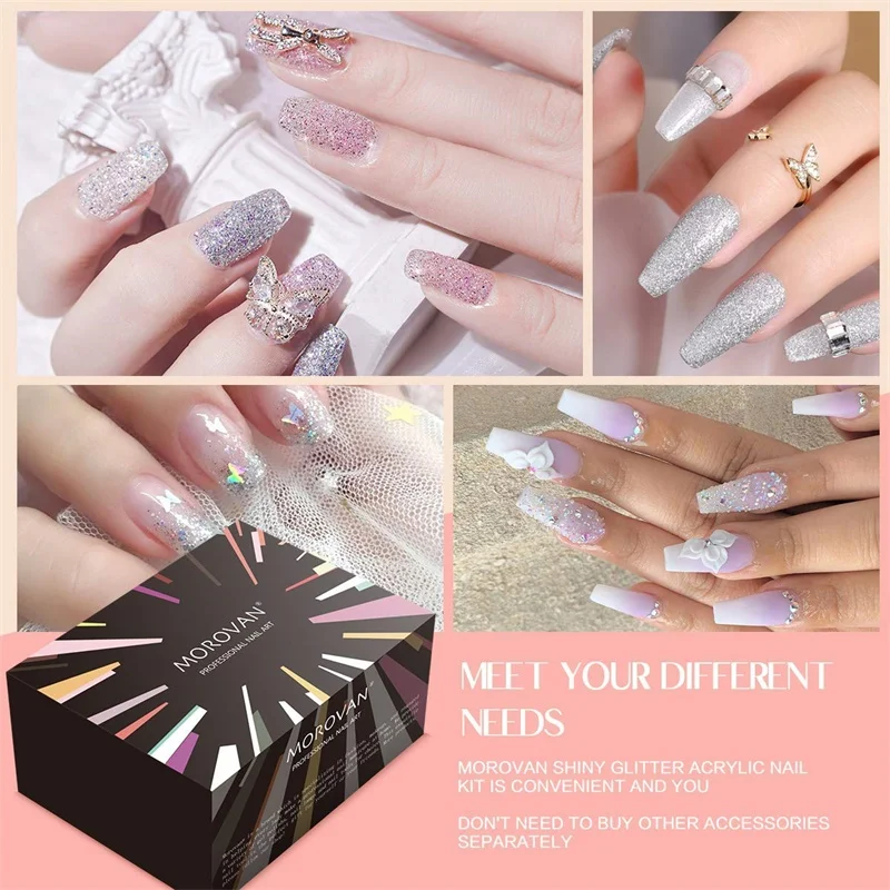 Набор для маникюра, акриловый набор для украшения ногтей, пилка для ногтей, акриловая пудра, блестящий жидкий мономер, гелевые наконечники, кисти для ногтей