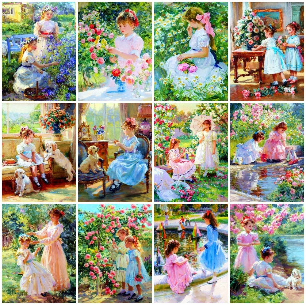 AZQSD DIY Алмазная художественная живопись сад Девушка ручной работы подарок Алмазная вышивка, портрет мозаика домашний Декор Картина Стразы