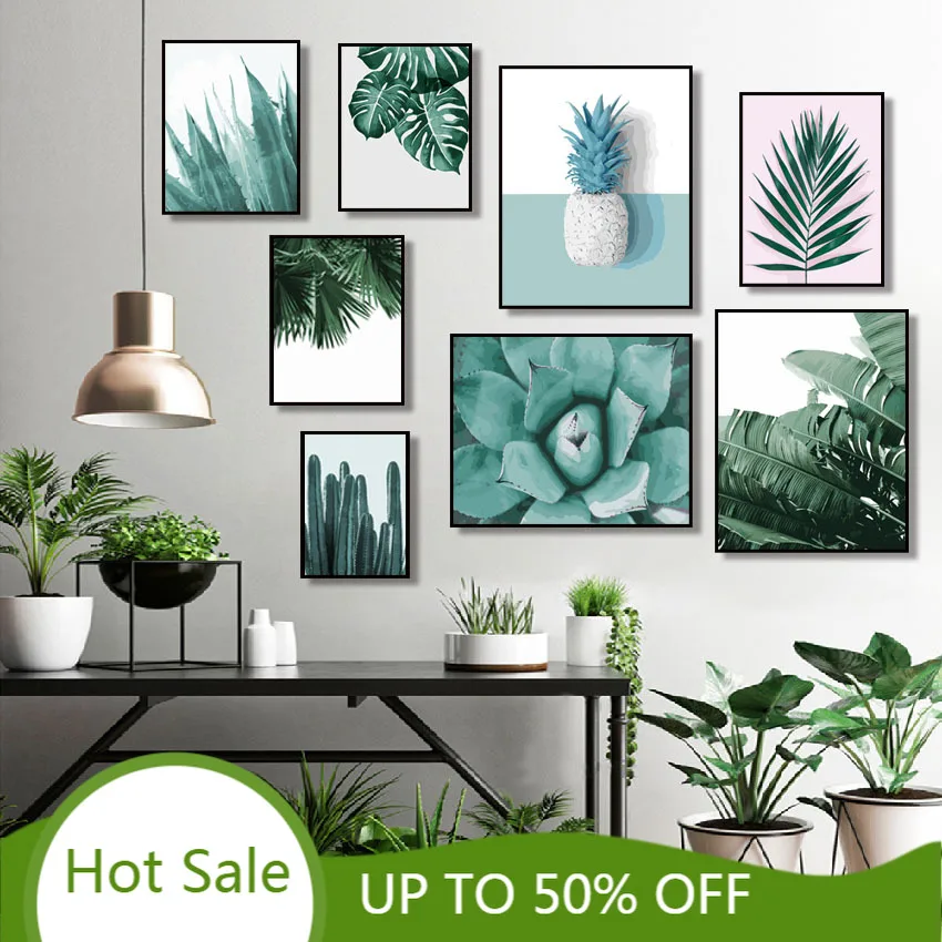 Акварельные листья настенная живопись холст зеленый стиль растение ...