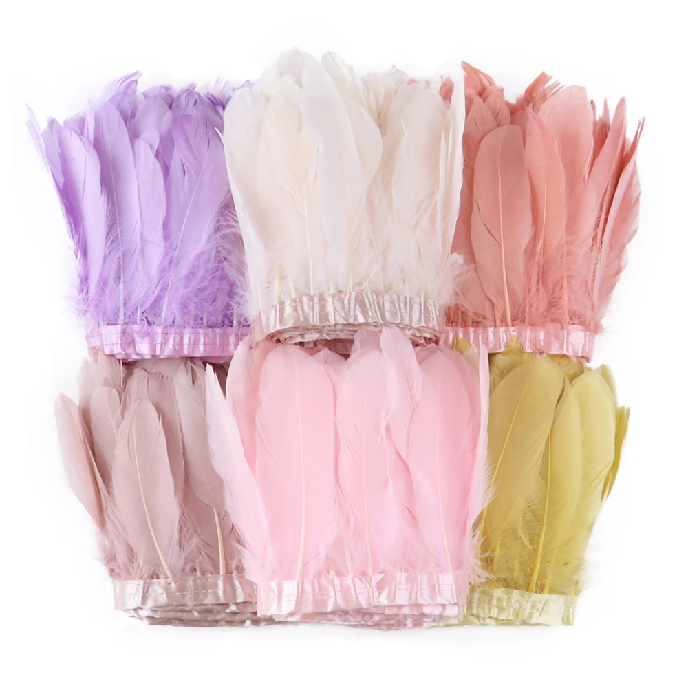 6-8 дюймов, отделка из гусиных перьев для рукоделия, розовые плюманы, лента, аксессуары для свадебного платья, подвесные декоративные настенные перья, 2 ярда