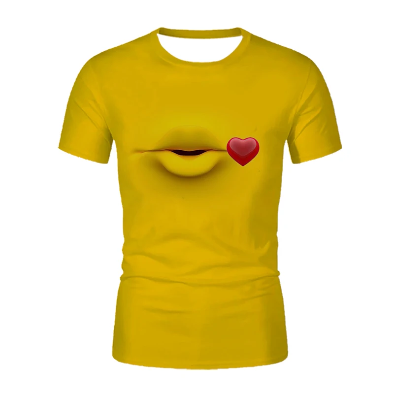 Летняя модная футболка с принтом губ, футболка с графическим рисунком, женские желтые футболки, топы, смешные футболки с поцелующимися губами для девочек, кавайная футболка, женская одежда