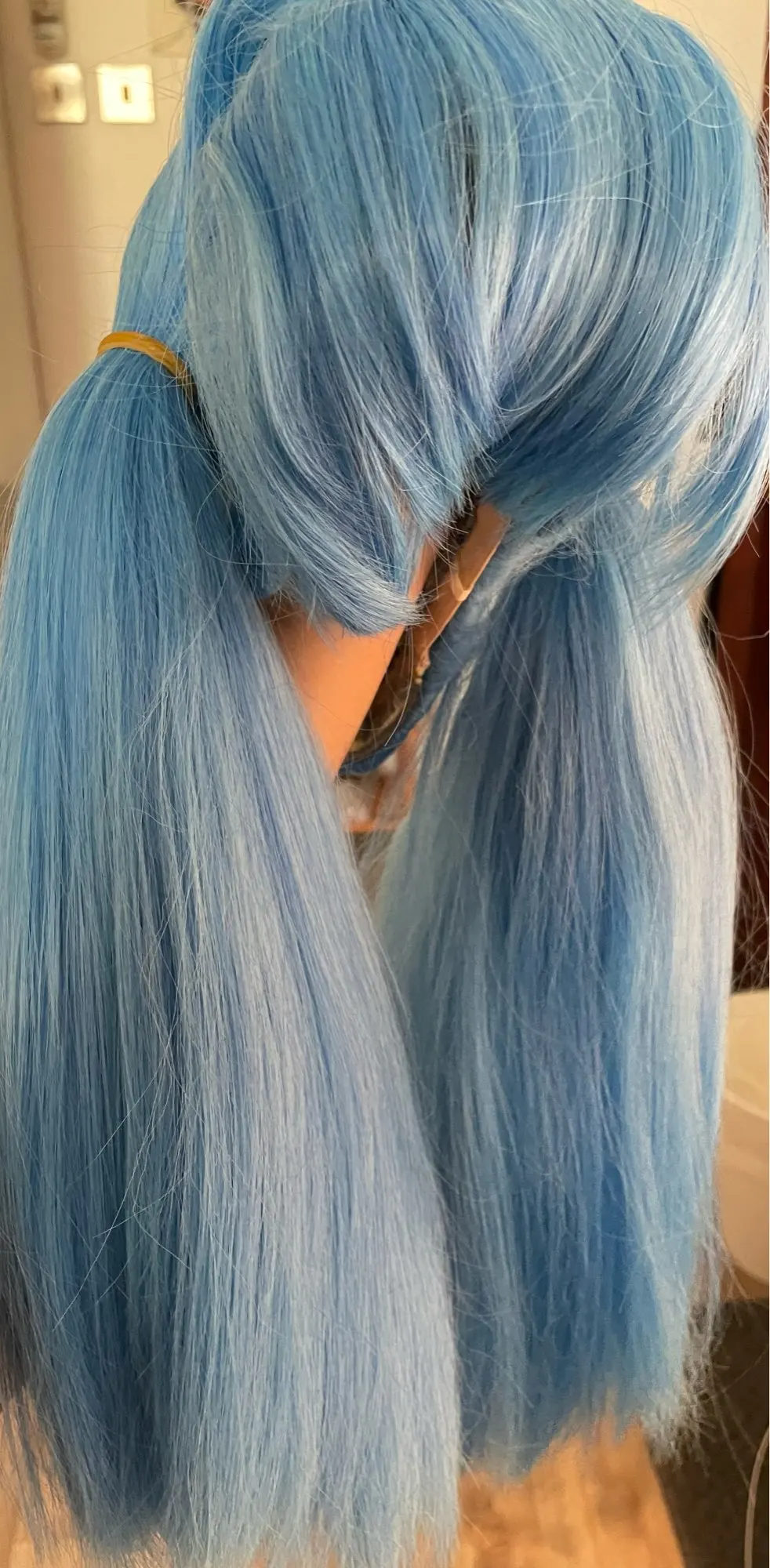 Хороший парик! У него много волос, и цвет немного темнее, чем на картинке, которая на самом деле хороша, потому что волосы персонажа немного темнее.