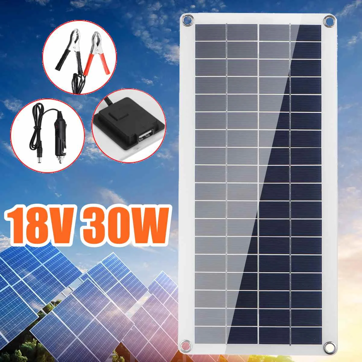 Комплект солнечной панели 30 Вт 18 в с зарядным контроллером, Монокристаллический Модуль USB для наружного цикла, кемпинга, пешего туризма, путешествий, зарядное устройство для телефона