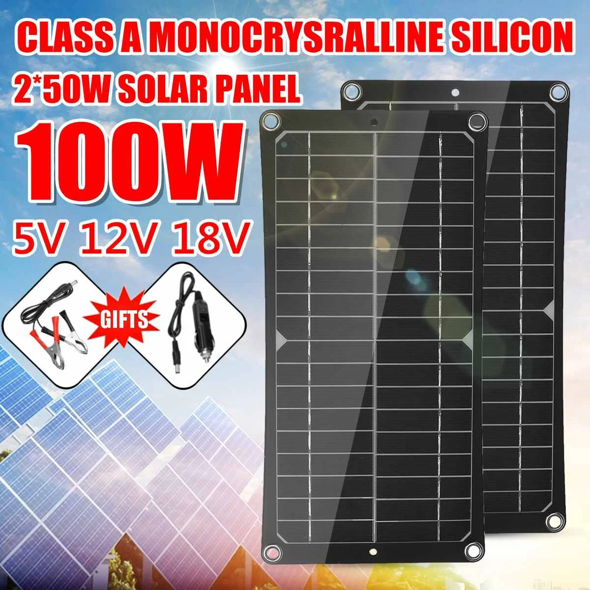 Монокристаллическая силиконовая полугибкая солнечная панель 100 Вт с USB 12 В5 В DC, уличное зарядное устройство для велосипеда, кемпинга, пешего туризма, путешествий, телефона