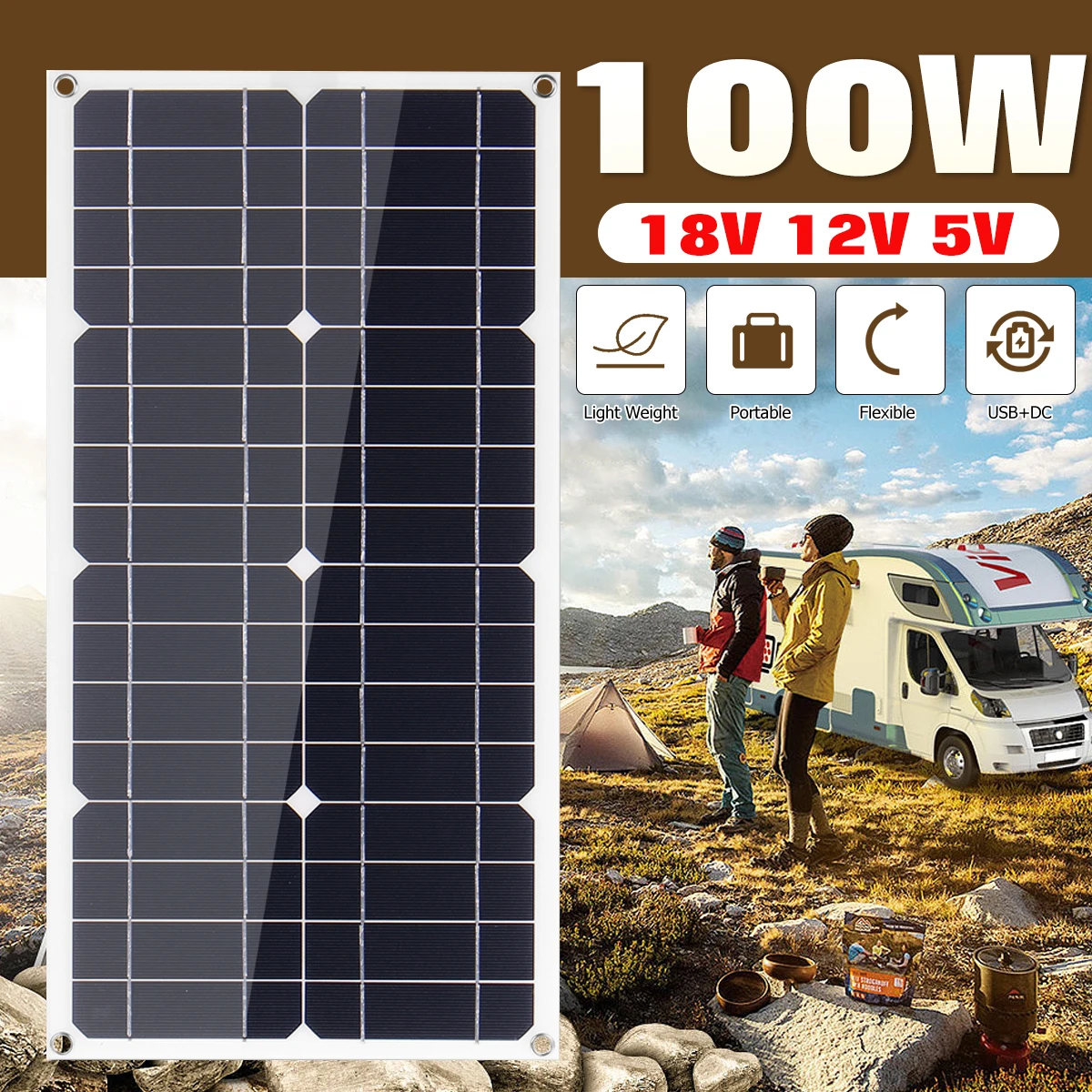 100 Вт 18 в моно солнечная панель двойная USB12V/5 В постоянного тока монокристаллическое гибкое солнечное зарядное устройство для автомобиля RV лодки зарядное устройство