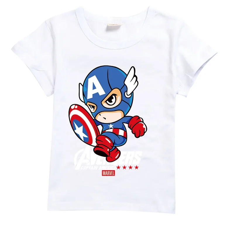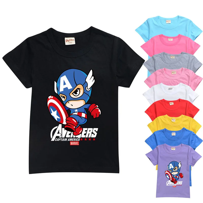Детская Хлопковая футболка с коротким рукавом, Однотонная футболка с мультяшным принтом Капитана Америка, для мальчиков и девочек, лето 2021
