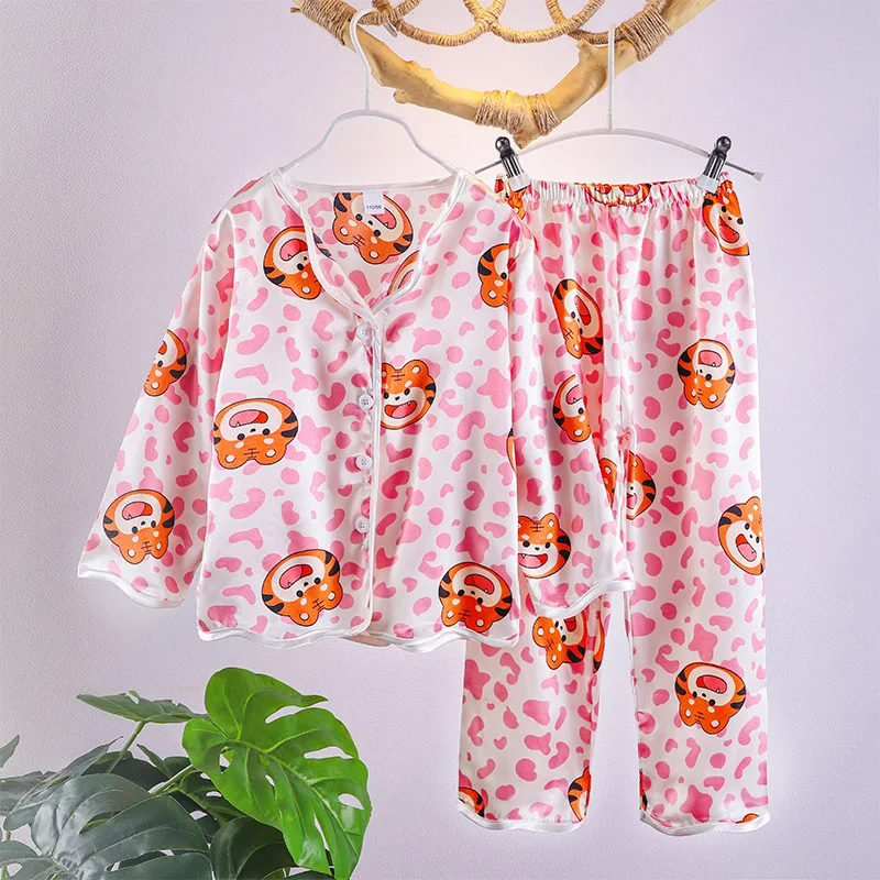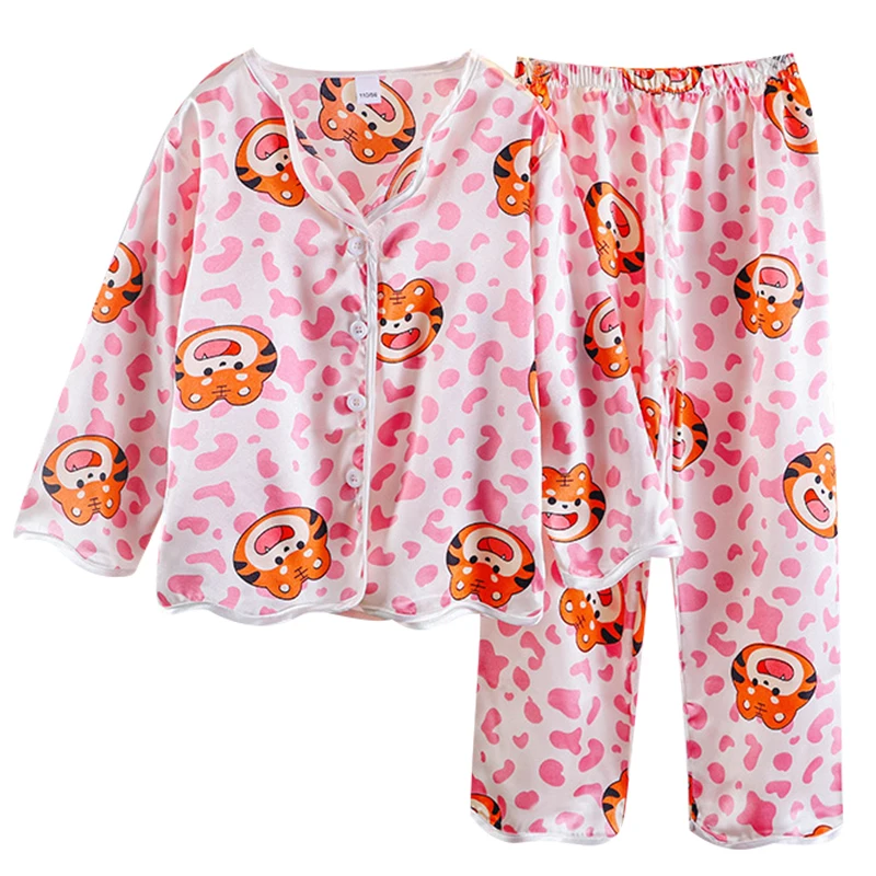 Новые детские пижамы, шелковые атласные топы, штаны, весенне-летняя одежда для сна, пижамные комплекты для мальчиков и девочек 9, 10, 11, 12 лет