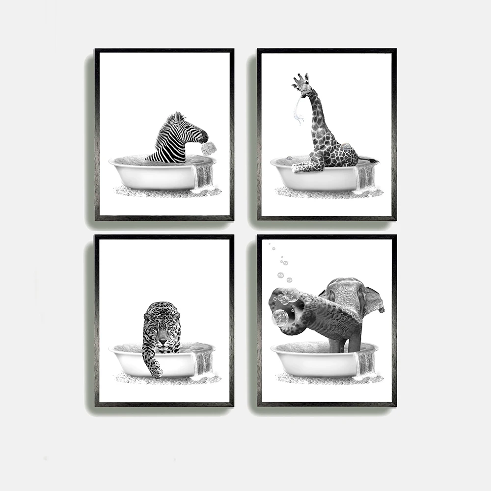 Ванная комната туалет ванна украшения живопись скандинавские Животные Сафари плакат жираф слон Зебра Леопард украшение дома