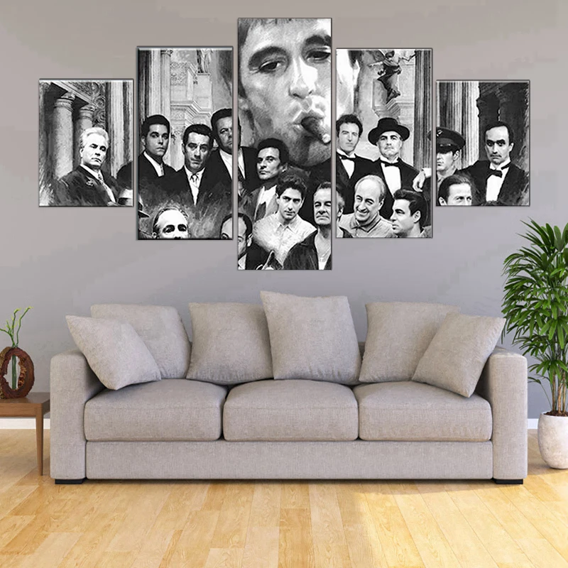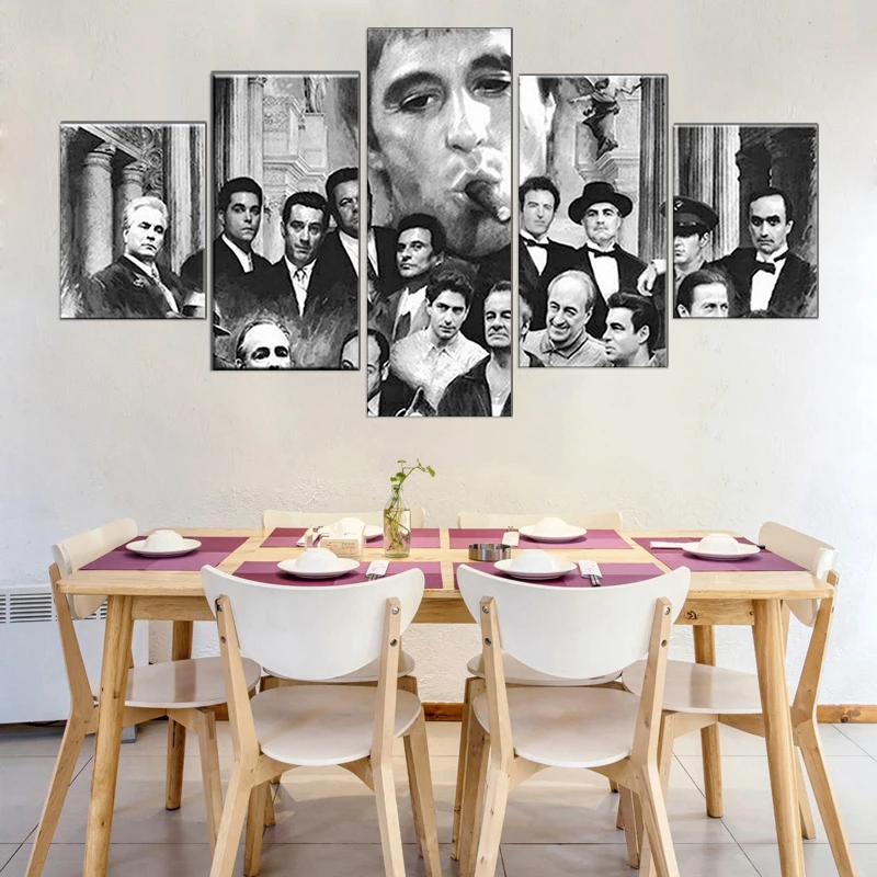 HD Печать на холсте в стиле ретро, 5 шт., Крестный отец, хорошие парни, Scarface, сопранос, модульный постер фильма, картина, Декор, комнатное настенное искусство