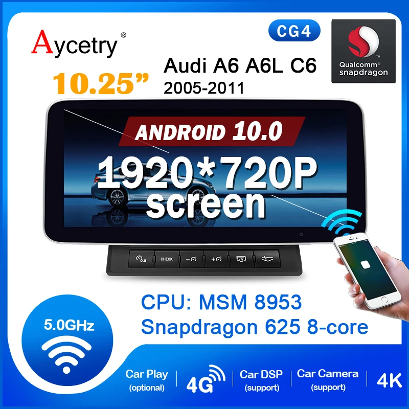 Автомобильное радио, мультимедийный плеер, Qualcomm 4G LTE, Android 10, Авторадио для Audi A6, A6L, C6 2005-2011, навигация, gps, стерео, 2 din