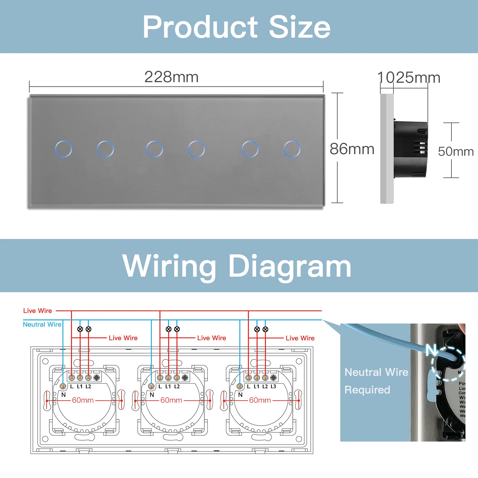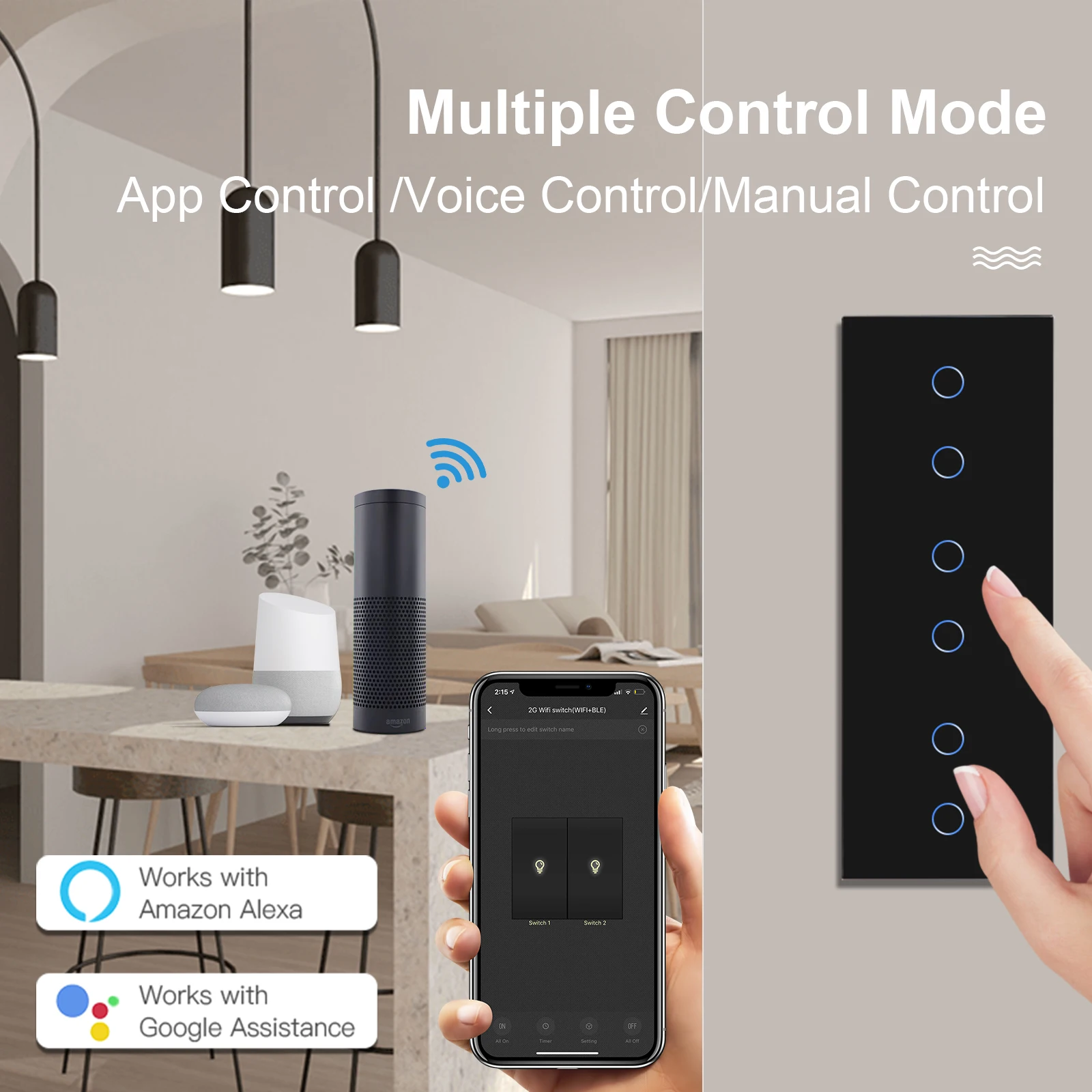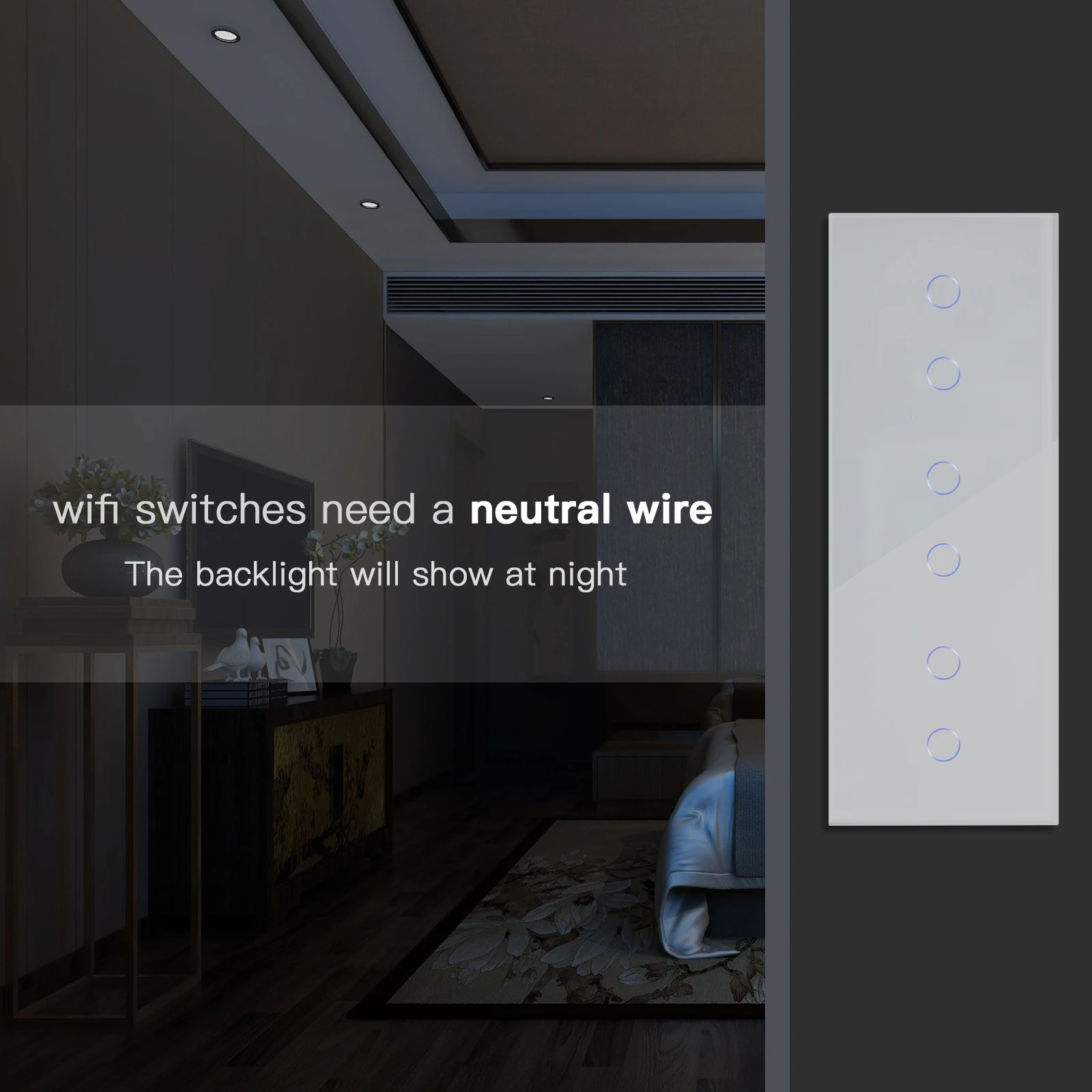BSEED 6 банда 123way WI-FI сенсорный выключатель Стекло Smart Touch настенный светильник сенсорный выключатель Экран Подсветка светильник Управление Google Aleax приложение Smart Life