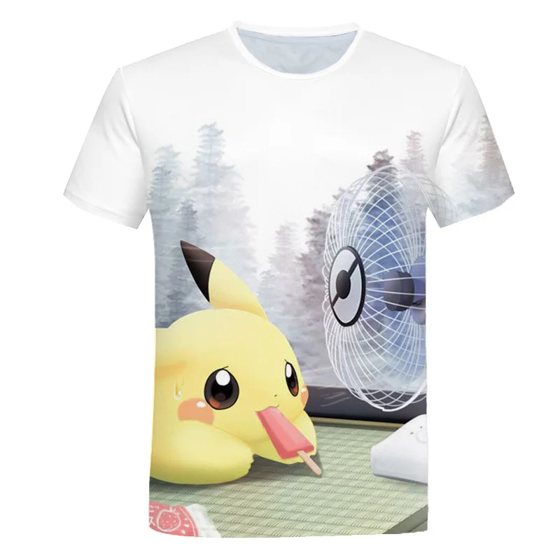Забавная футболка Пикачу, мультяшный Покемон, короткий рукав, 3D фу...