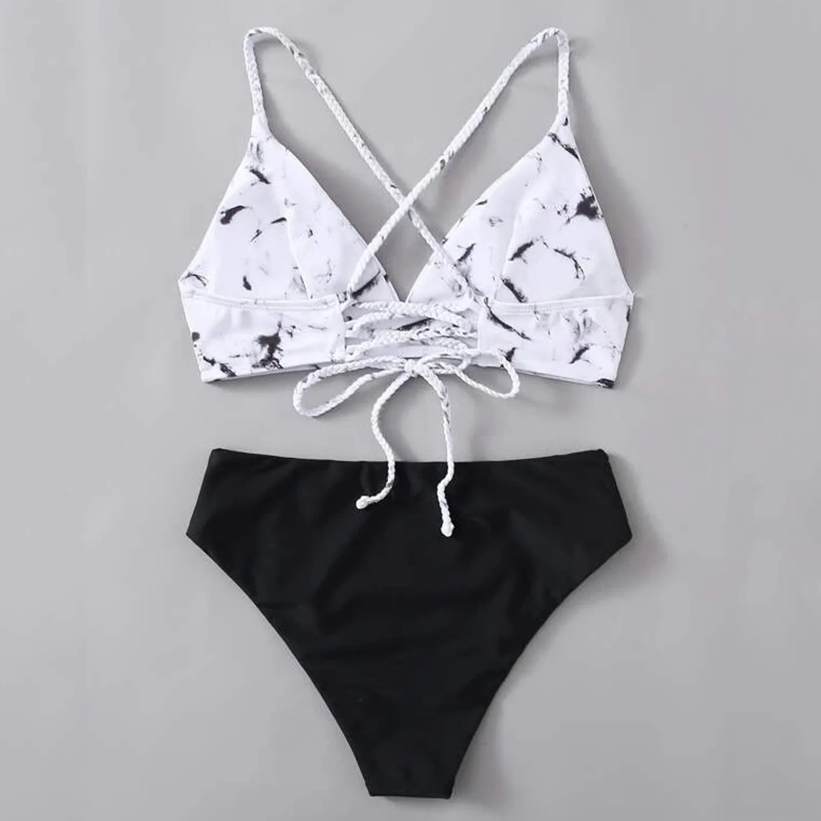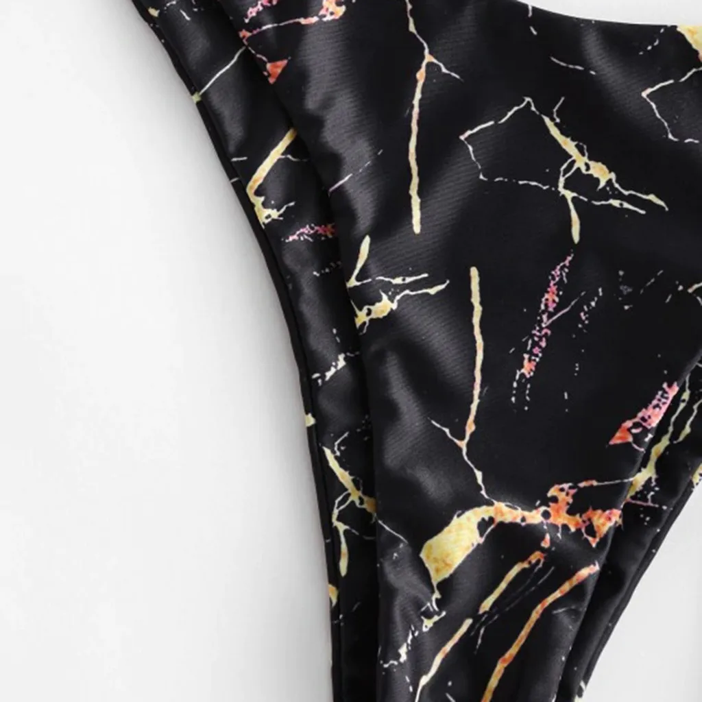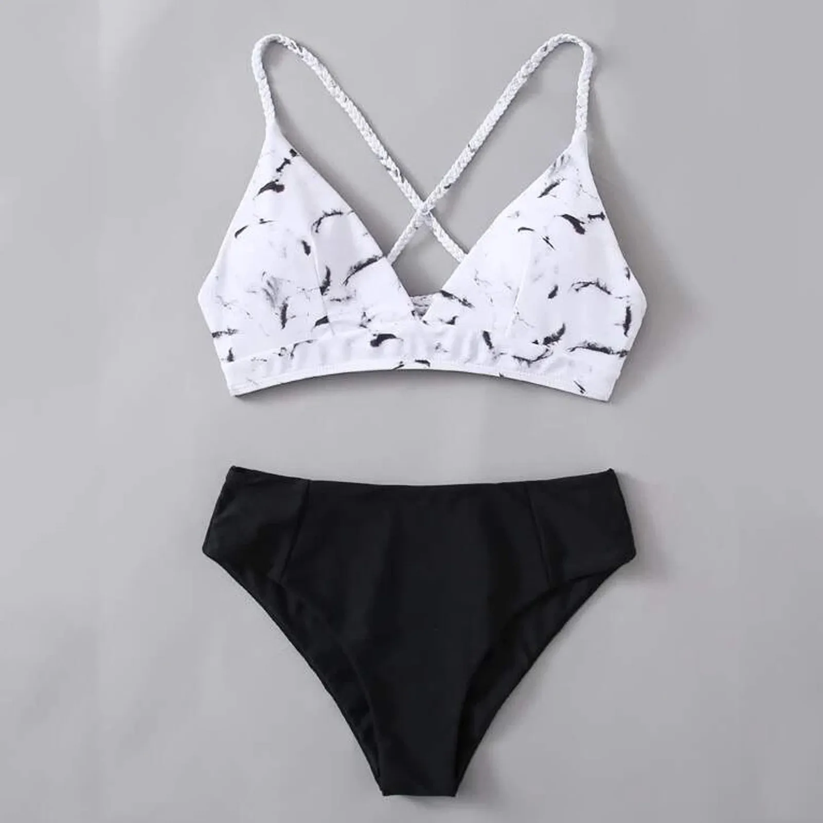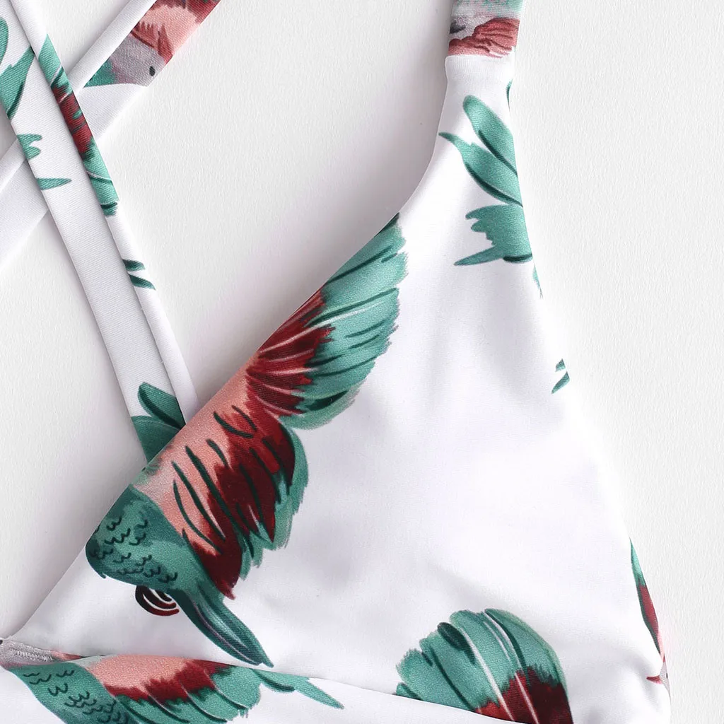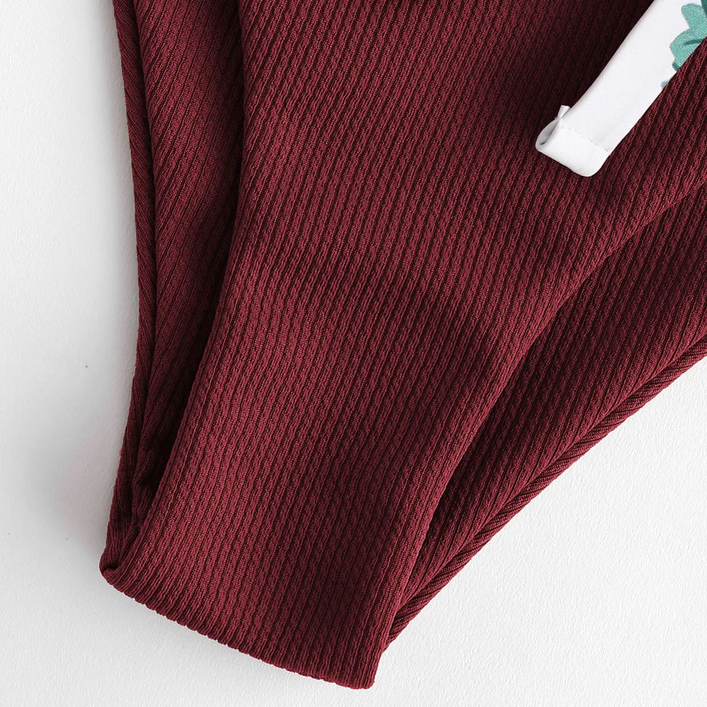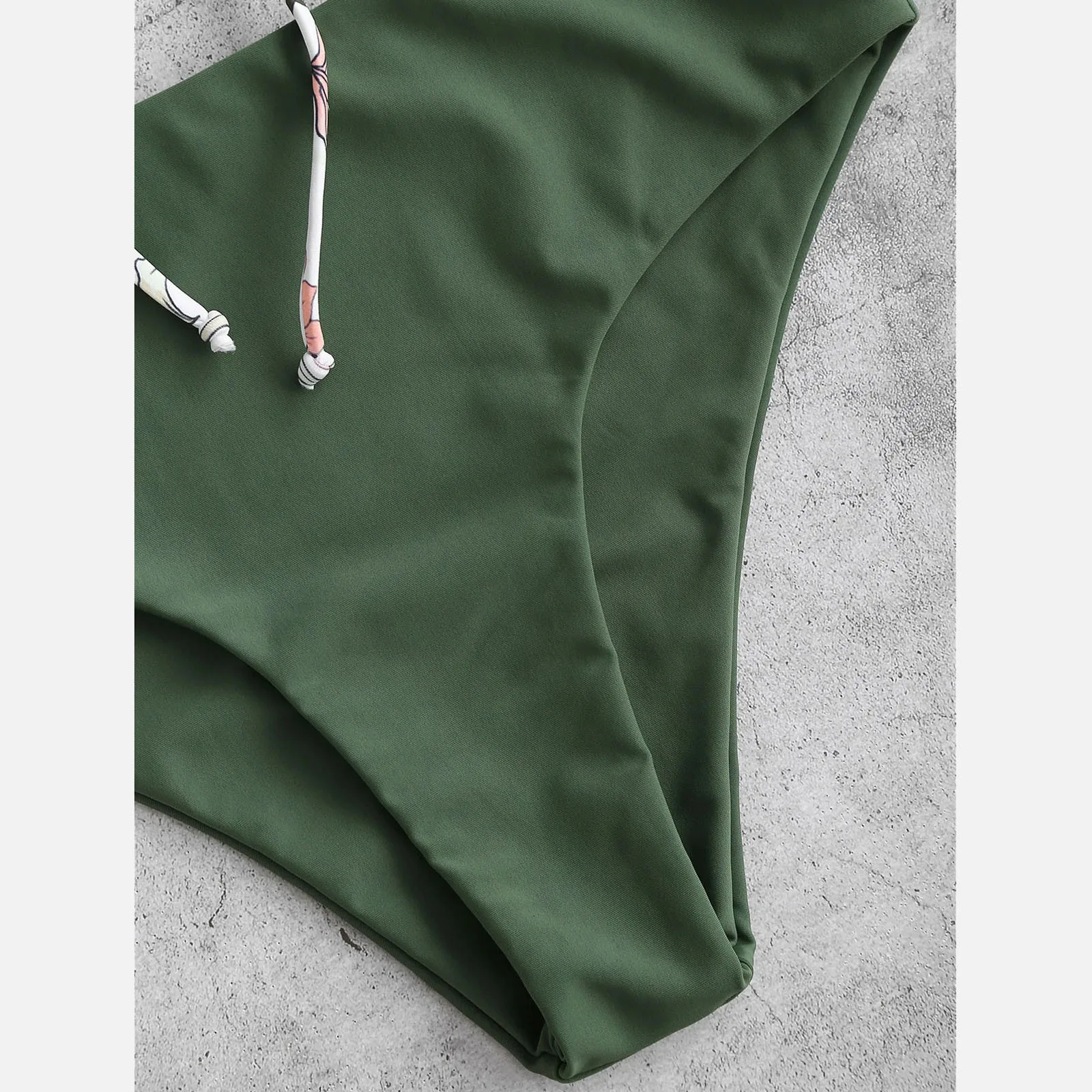 Комплект бикини женский с цветочным принтом, купальники из 2 предметов, пуш-ап, бандо, Топ бикини, полное покрытие, средняя талия