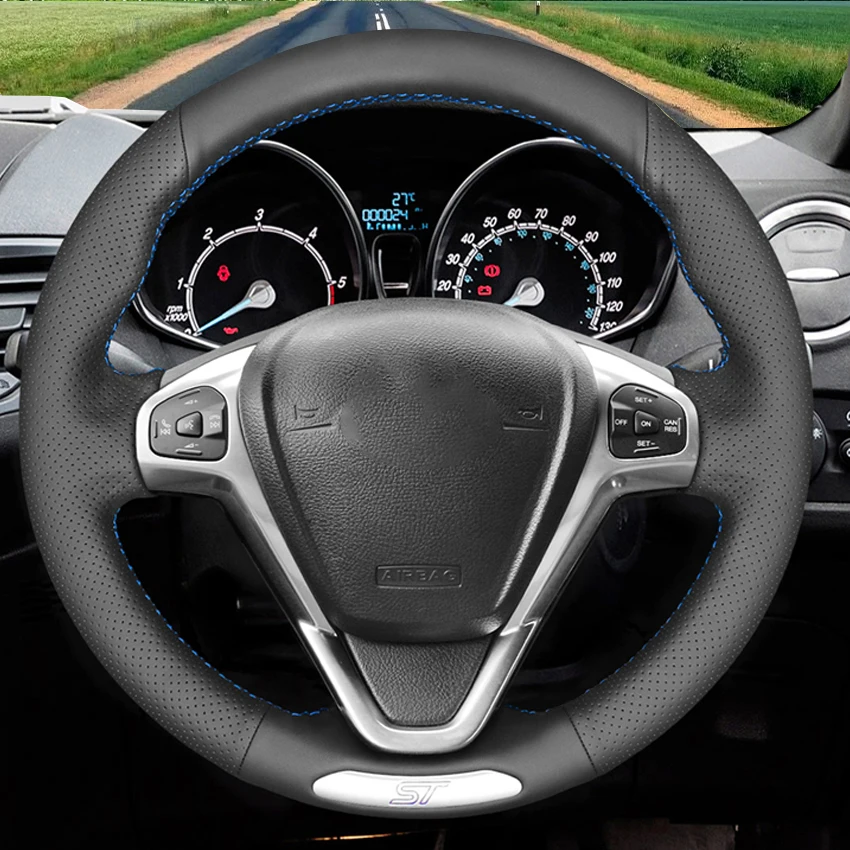 Черная искусственная кожа ручной работы без скольжения чехол рулевого колеса автомобиля для форд фиеста ST 2012 2013 2014 2015 2016 2017