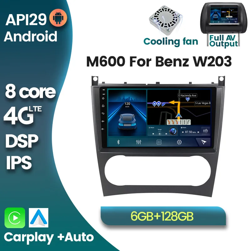 Автомобильный GPS-навигатор 2DIN 6 + 128G для Mercedes Benz C-Class W203CLC W203, автомобильный радиоприемник, мультимедийный плеер Android 10 Carplay, автомобильный без DVD