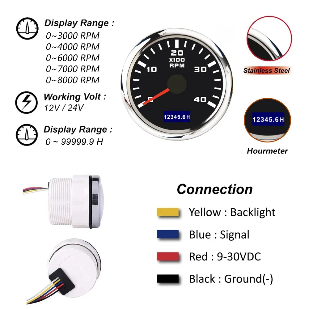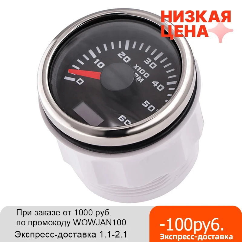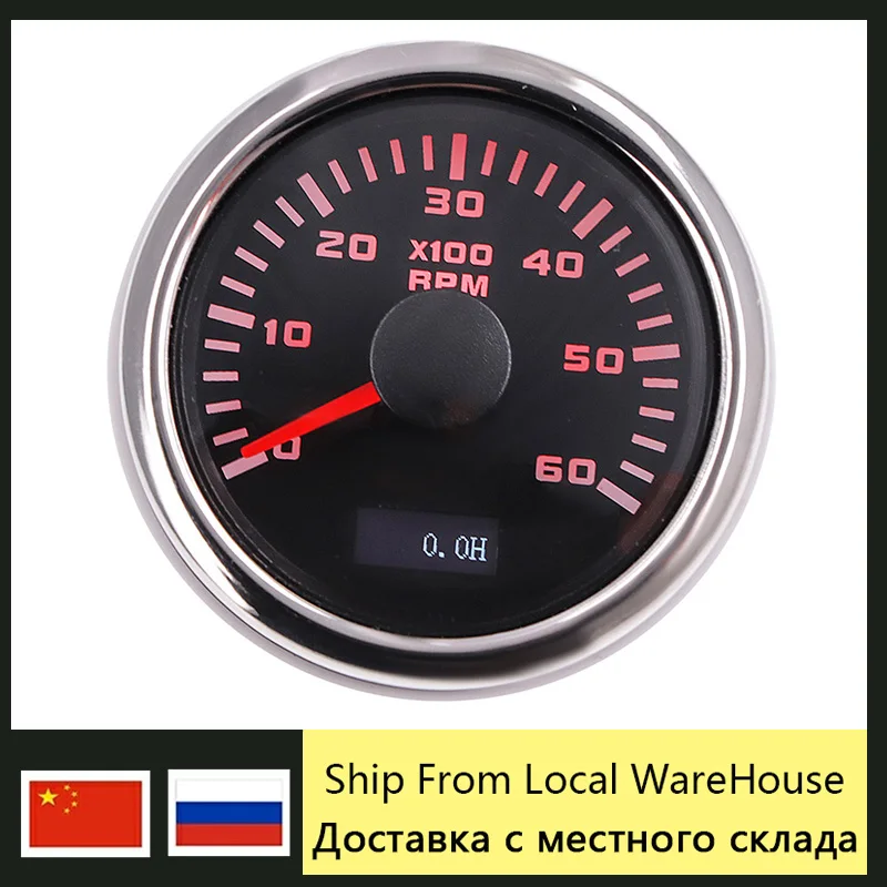Тахометр с указкой 52 мм, 6000 обмин, прибор с красной подсветкой для автомобиля, мотора, лодки, яхты, RV, 1224 в