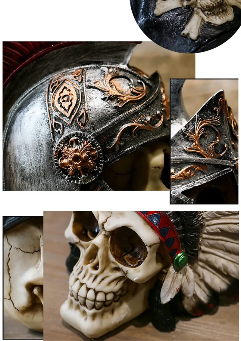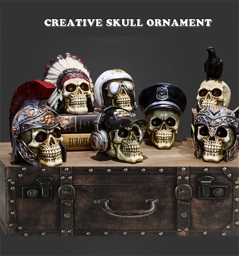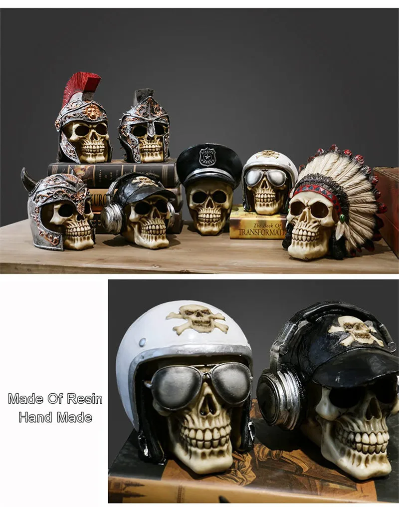 Абсолютно новый и высокое качествоИзготовлен из смолы, хорошо резной и окрашенныйКреативный череп с особым внешним видом, выглядит крутоИдеально подходит для подарка или украшения дома/столаМатериал: смолаТип 1: статуя черепаТип 2: РемеслоТип 3: украшение для домаИспользование 1: вечерние костюмы на ХэллоуинИспользование 2: гостинаяИспользование 3: вечерние УжасыПосылка включает:1XSkull статуи