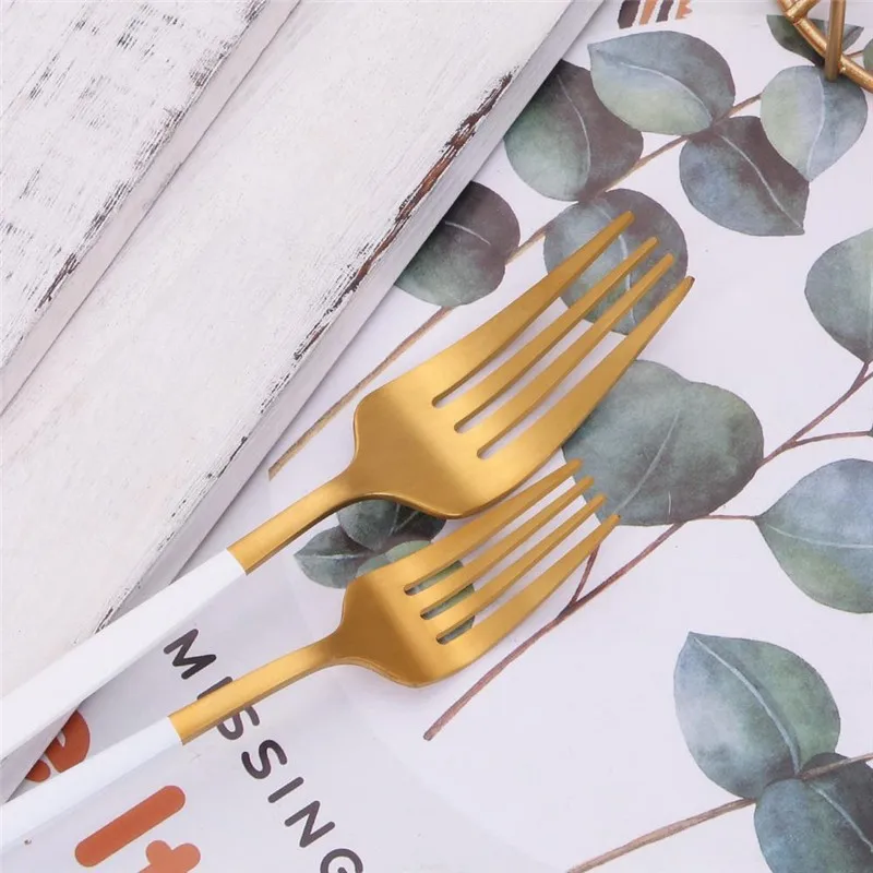 Кухонная посуда, набор столовых приборов из нержавеющей стали, набор столовых приборов, ложка, вилка, нож, столовая посуда, столовый набор, белый и золотой, Прямая поставка