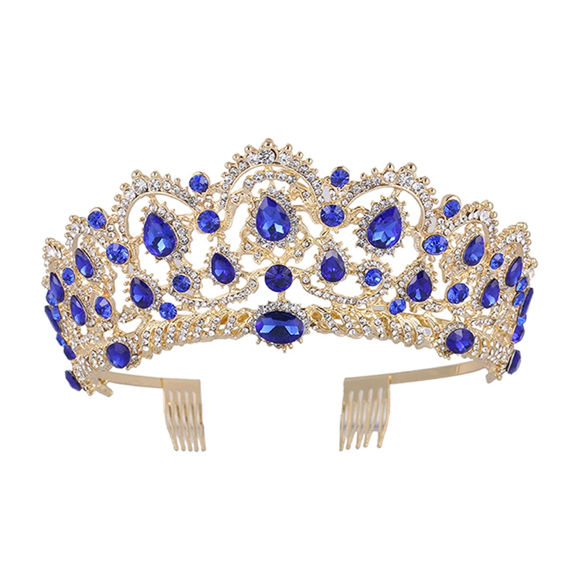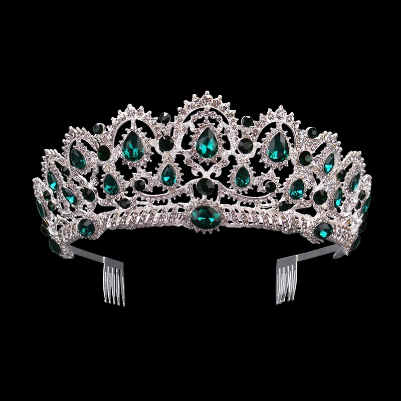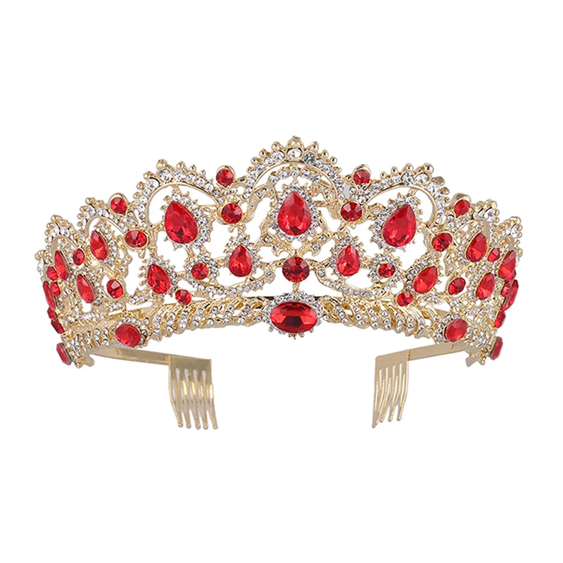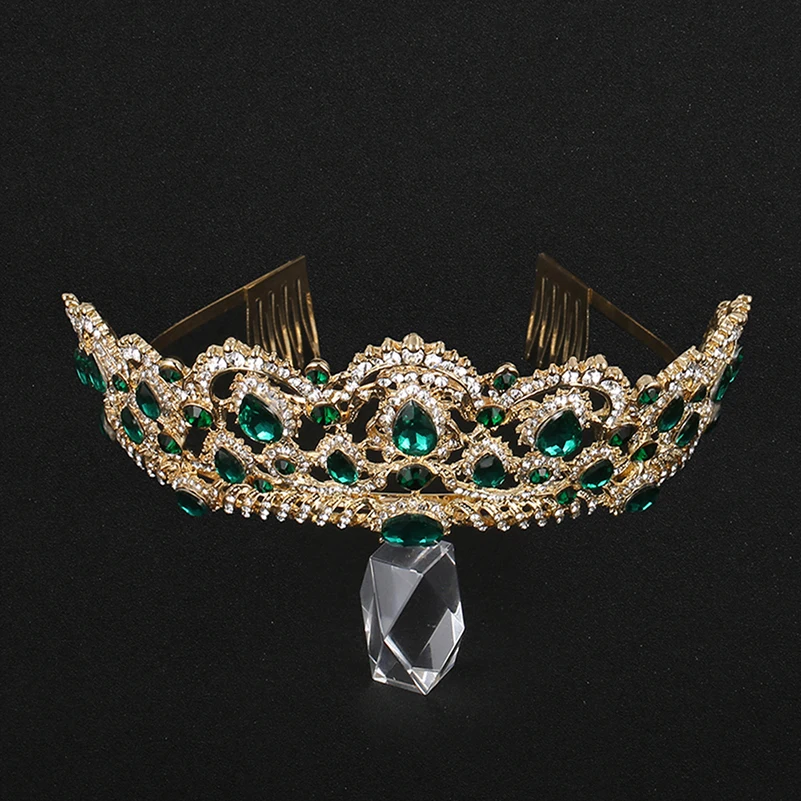 Тиары YXPH в европейском стиле, винтажные золотистые короны с гребнем в стиле барокко, свадебные аксессуары для волос с зелеными и красными кристаллами