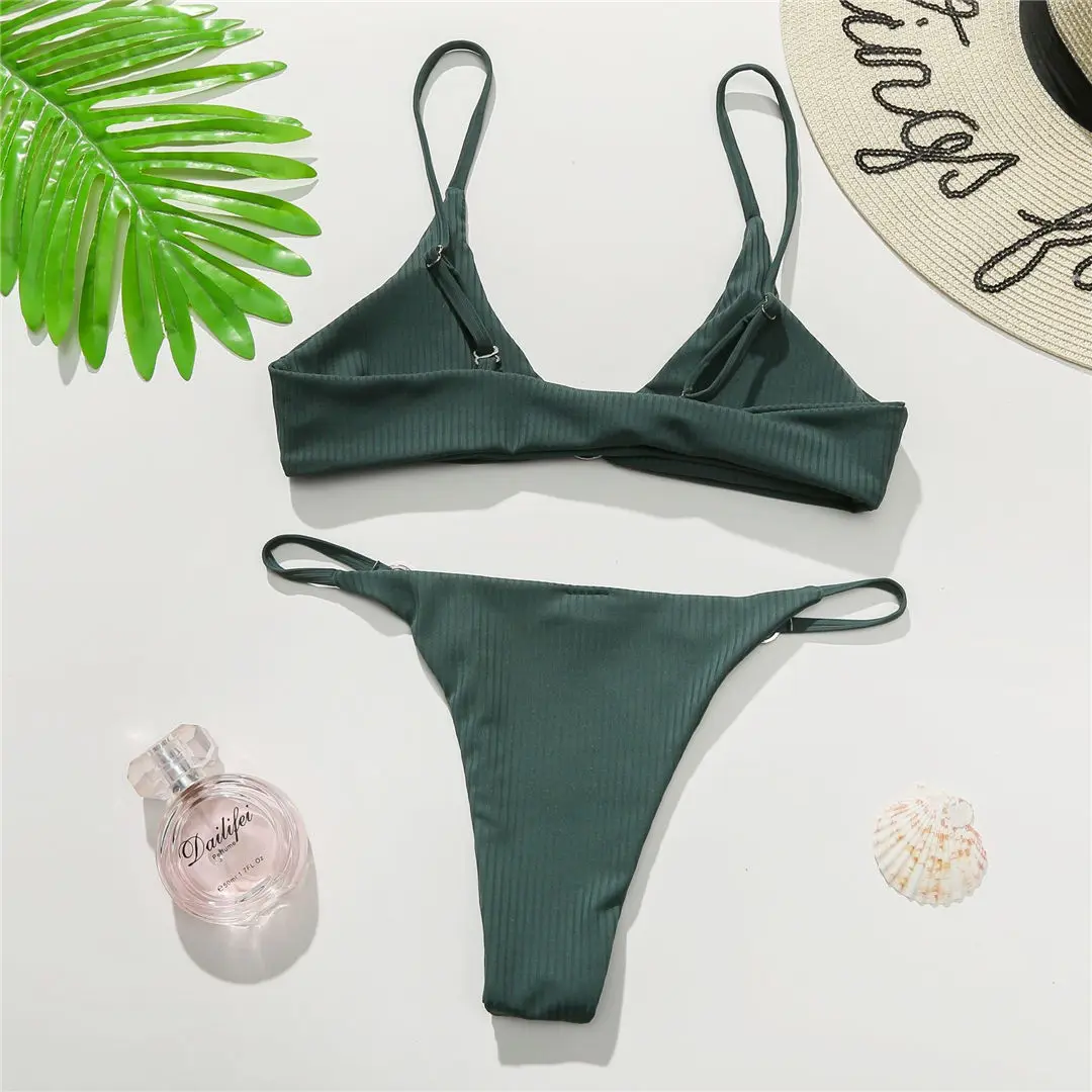 Сексуальный ребристый Бразильский бикини 2022 купальник женский ком...