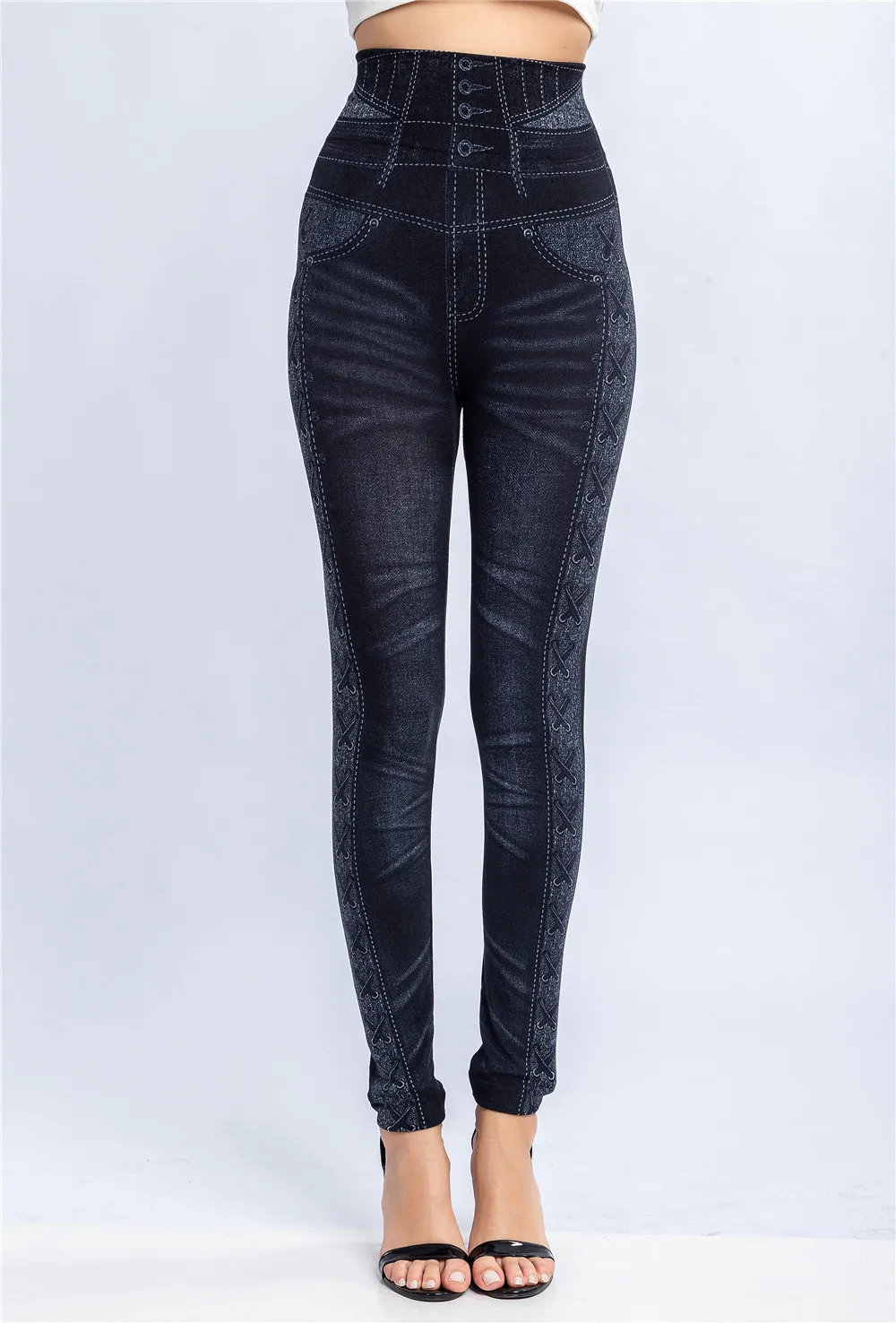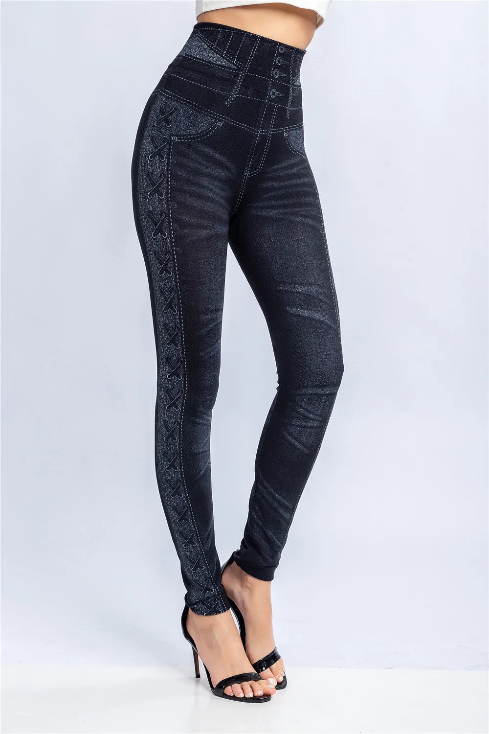 Размера плюс 3XL Высокая талия из искусственной кожи на весну и осень джинсовая Леггинсы Узкие эластичные бесшовные облегающие джинсы-карандаши голубого цвета брюки женские тренировки Леггинсы