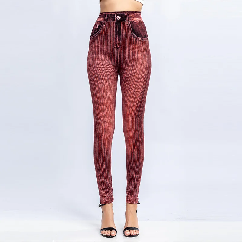 Женские джинсы-карандаш, бесшовные облегающие леггинсы из искусстве...